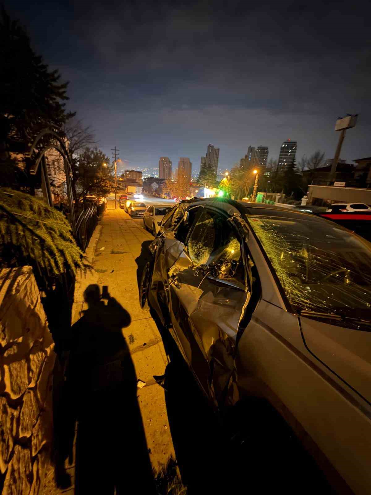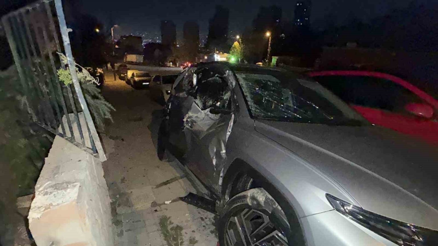Ankara’da kontrolden çıkan hafriyat kamyonu, duvar ve ağacı yıkarak girdiği apartman bahçesindeki 4 otomobile çarptı. Kaza anı anbean güvenlik kamerasına yansıdı.