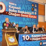 Kadir Has Kongre Merkezi’nde yapılan Hizmet – İŞ Sendikası Kayseri Şubesi’nin 10. Olağan Genel Kurulu; divan heyetinin oluşturulmasıyla başladı. Ardından saygı duruşunda bulunulması ve İstiklal Marşı’nın okunmasıyla devam eden genel kurula katılan Hak-İş Konfederasyonu Genel Başkanı ve Hizmet-İş Sendikası Genel Başkanı Mahmut Arslan üyelere seslendi. Vergi sisteminde adaletsizlik olduğunu savunan Başkan Arslan; “HAK-İŞ olarak Kayseri’de bir miting gerçekleştirmiştik, bu mitingin amacı şuydu; emeklilik sistemi başta olmak üzere vergi sistemimizi ve başka sorunlarımızı gündeme getirerek kamuoyu oluşturmak adına Kayseri, Gaziantep, Kocaeli gibi illerde büyük mitinglere imza atmıştık. Vergi bir vatandaşlık borcudur, vergi vermekten asla şikayetçi değiliz. Vergimizi verirsek devlet oluruz, vergi varsa bir devlet vardır. Biz vergi vermekten şikayetçi değiliz. Ama çok kazananın az verdiği, az kazananın çok vergi verdiği bir sisteme itiraz ediyoruz. Verginin adil olması gerekiyor. Bizim vergi sistemimizde ne yazık ki ciddi bir sorun var. Bu sorunların çözümü için HAK-İş ciddi çalışmalar yaptı. En son Maliye Bakanımız ile yaptığımız görüşmelerde bu hususun bir kere daha altını çizdik ve bunun değişmesini istedik. 2002 yılında bir asgari ücretli 17 ay çalıştıktan sonra yüzde 20 dilime giriyordu, yani 1 yıl yüzde 15’ten çalışmaya devam ediyordu. Vergi dilimlerindeki makas bayağı bir genişti. Bugün asgari ücretliden vergi alınmış olsa 5 ay sonra yüzde 20 dilime giriyor. Asgari ücretten yüksek alan vatandaşlarımız ki kamuda çalışanlarımız da öyle 4. aydan itibaren yüzde 20 dilime giriyor. Ocak ayında 100 TL’miz bu sistem içerisinde Aralık ayına gelindiği zaman 75 TL’ye düşüyor. Ücretimiz aşağı çekiliyor. Çünkü vergi dilimlerindeki makas çok kısa. Büyük bir haksızlık yaşıyoruz. Verginin bütün yükünü çalışanlara, ücretlilere yıkmak adil değil” dedi.