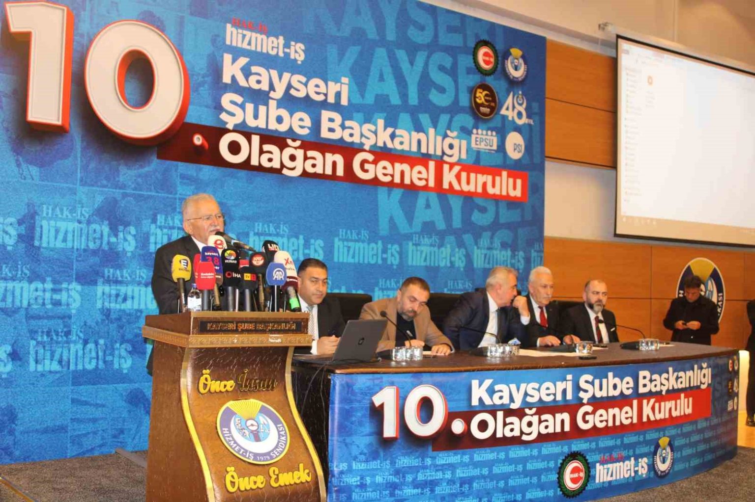 Belediyeler olarak aynı anlayışla çalışmaların devam etmesi gerektiğine vurgu yapan Kayseri Büyükşehir Belediye Başkanı Memduh Büyükkılıç da; “Hem siyasi hem gönül bağı itibariyle HAK-İŞ’i, Hizmet-İŞ’i bir sendika olmaktan öte gören bir anlayış içerisinde sürecin baştan beri takipçisi ve az çok da emeği olan bir anlayışla aynı felsefenin insanları olarak seviyoruz. Sendikamızın kıymetli başkanına diyorum ki; ne olur eğitim ve felsefemizi asla göz ardı etmeyelim, hep beraber yol alalım. Bunun dışında gerisi hep halledilir. O açıdan ücret politikasıyla değil anlayış sahibi olarak el ele vereceğiz” diye konuştu.