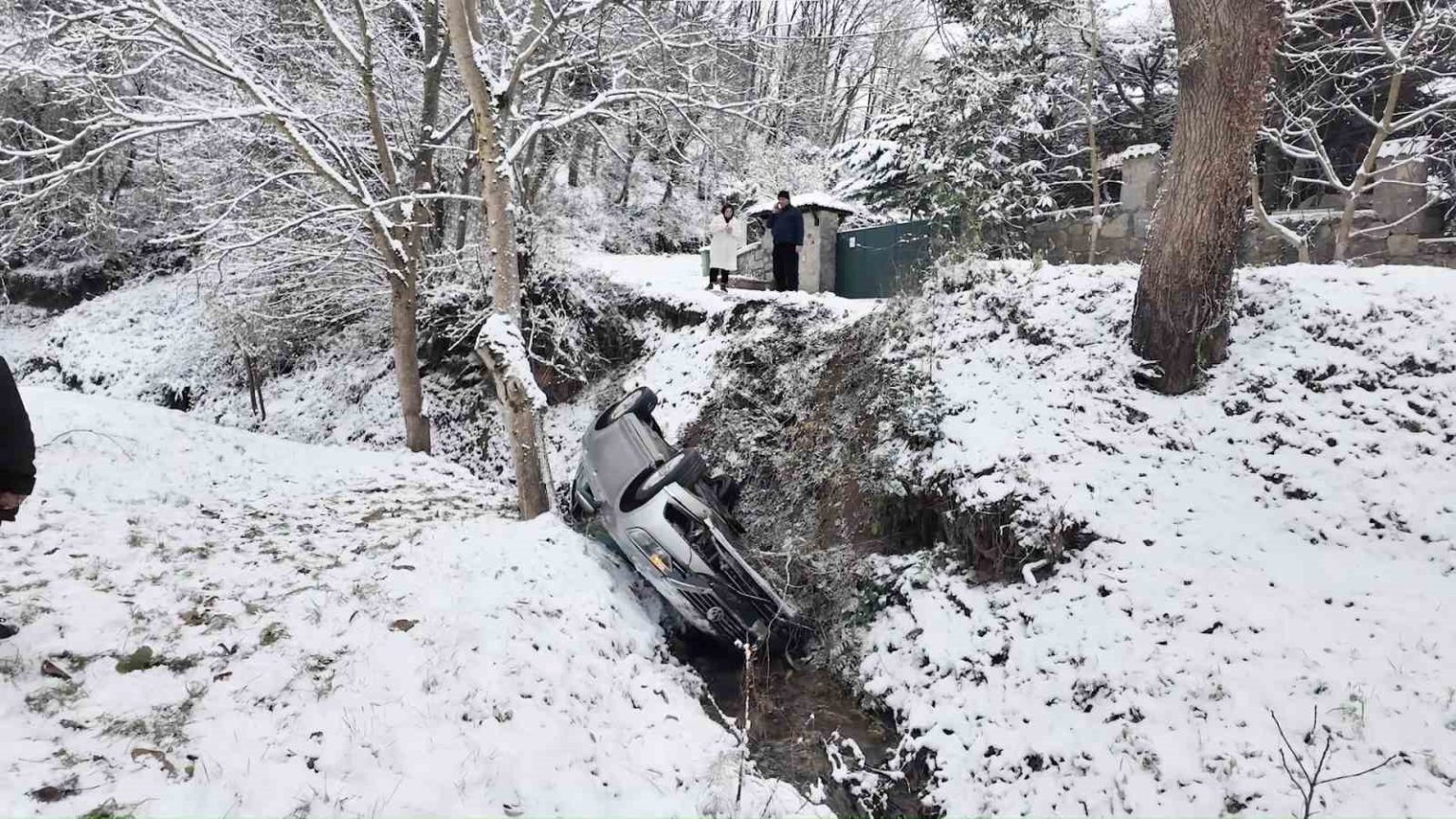 Edinilen bilgilere göre, 34 KE 2161 plakalı otomobilin sürücüsü S.K., karla kaplanan ve kayganlaşan yokuşta kontrolünü kaybetti. Savrulan araç, yol kenarındaki dereye uçarak durabildi. Kazanın ardından çevredekilerin ihbarı üzerine olay yerine itfaiye, sağlık ve polis ekipleri sevk edildi.