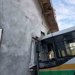 Hızla savrulan otobüs, yol kenarında bulunan tek katlı bir eve çarptı. Çarpmanın şiddetiyle evde ve otobüste maddi hasar oluşurken, kaza sırasında evin ve otobüsün boş olması ve içeride büyük bir faciayı önledi.
