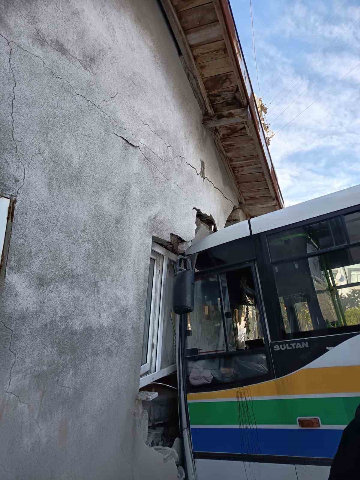 Hızla savrulan otobüs, yol kenarında bulunan tek katlı bir eve çarptı. Çarpmanın şiddetiyle evde ve otobüste maddi hasar oluşurken, kaza sırasında evin ve otobüsün boş olması ve içeride büyük bir faciayı önledi.