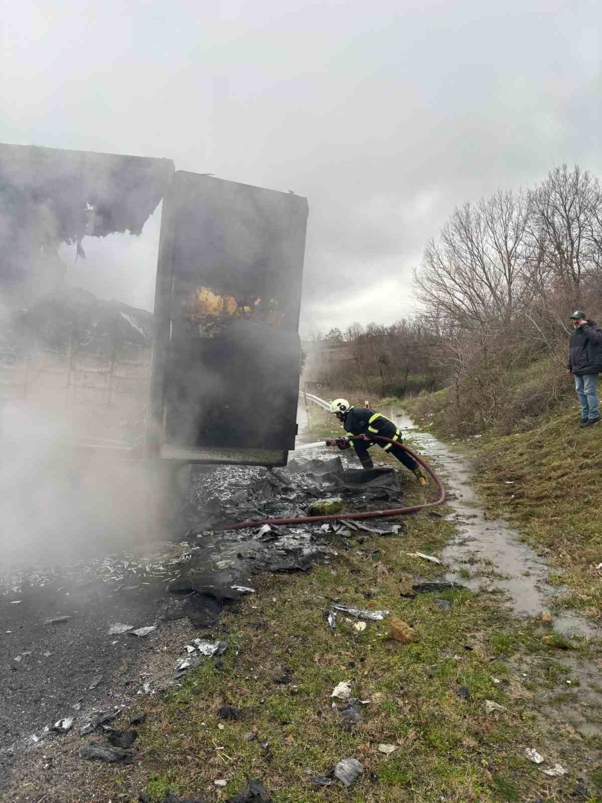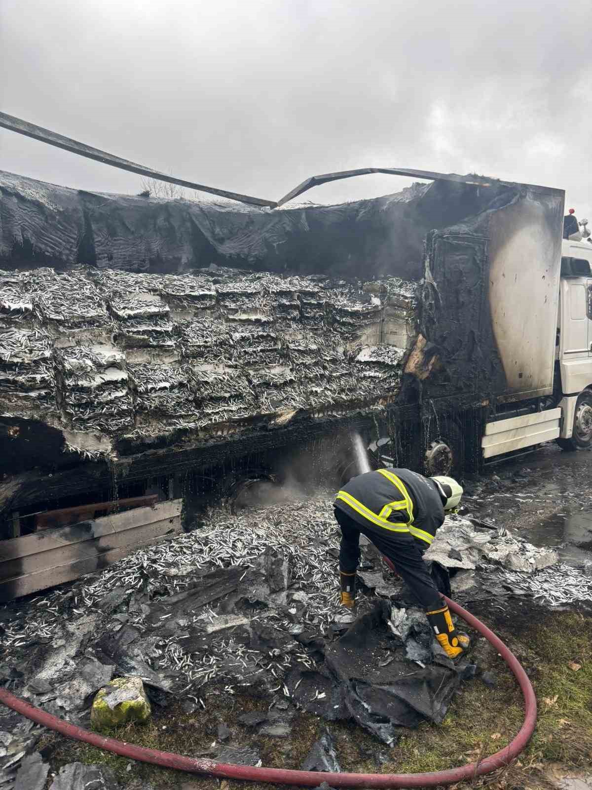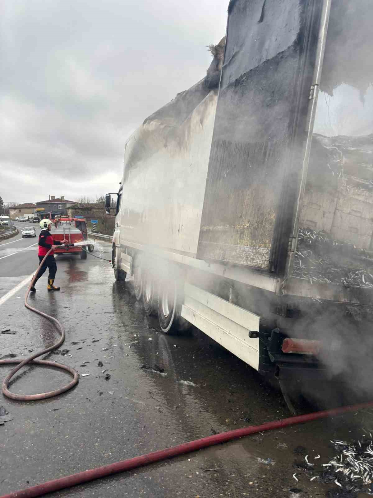 Hamsi yüklü tır alevlere teslim oldu: Dorse kullanılamaz hale geldi