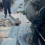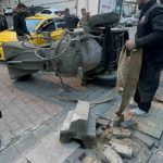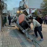 Harç karma makinesi, ticari taksinin üzerine devrildi