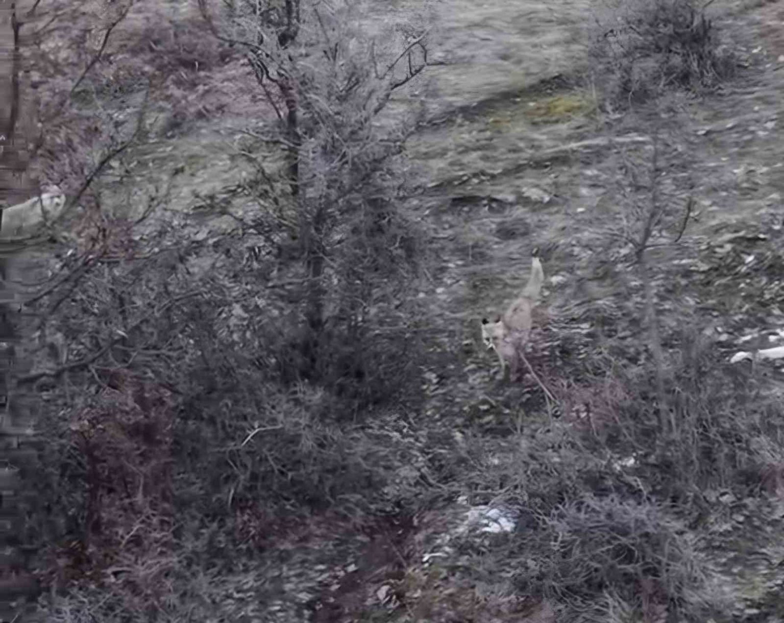 Muş’un Hasköy ilçesinde dağ yamacında ilerleyen iki tilki, dron kamerasına yansıdı.