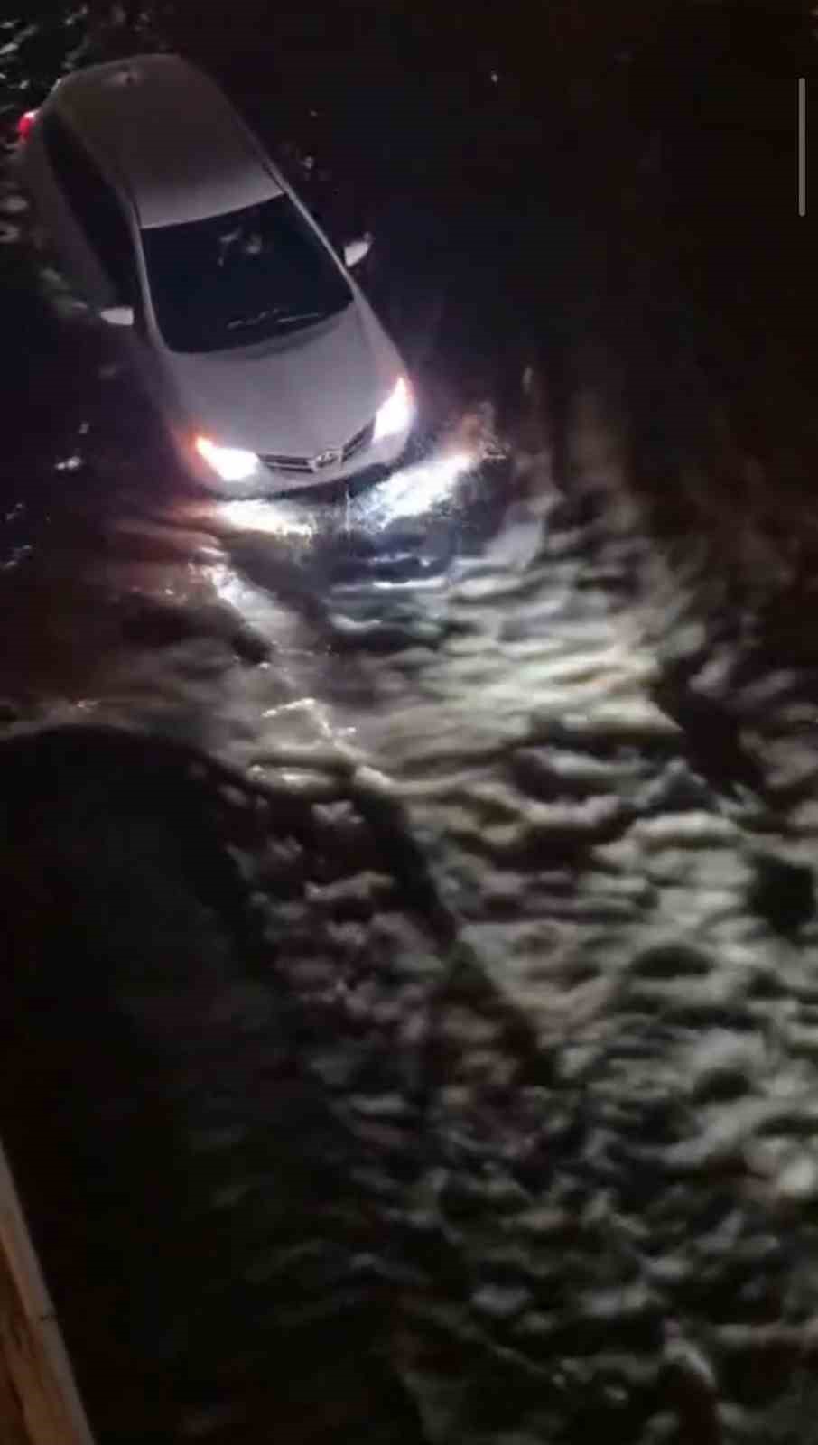 “Burası yaklaşık son 2 saattir yağış aldı, bayağı yollar kapandı ve sel oldu”