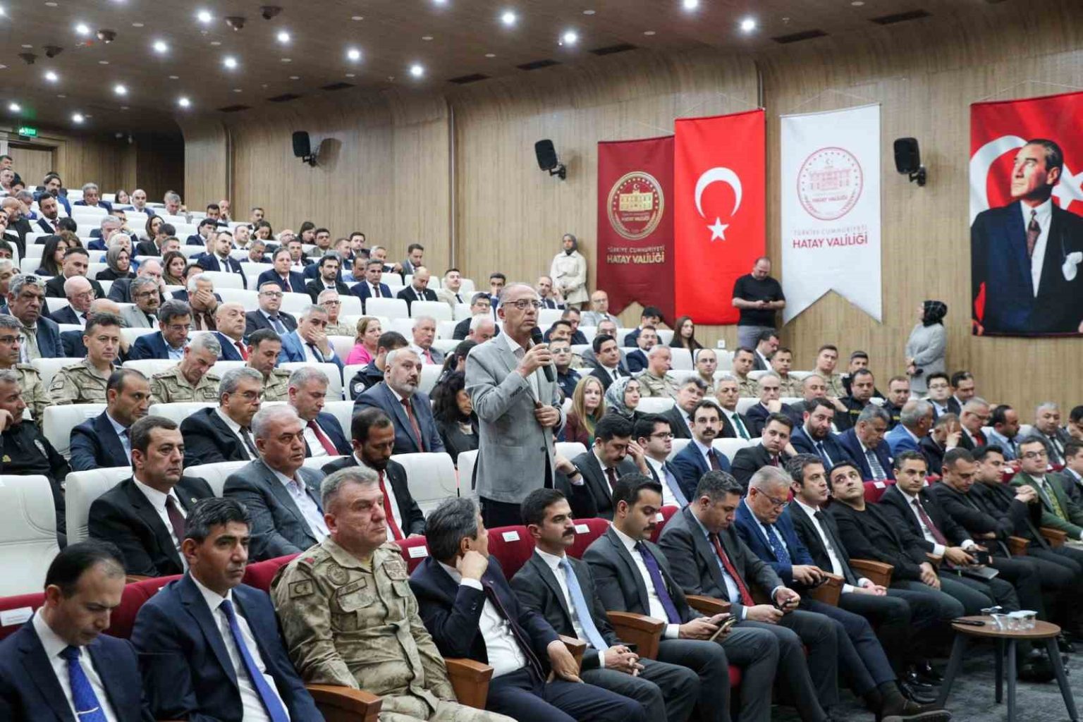 Hatay Valisi Mustafa Masatlı başkanlığında düzenlenen toplantıda, “Güvenli Okul, Güvenli Gelecek Projesi” tanıtımı ve koordinasyon süreci ele alındı.