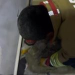 Hatay’da havalandırma boşluğuna düşen yavru kedi kurtarıldı