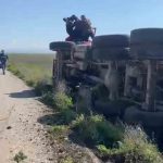 Hatay’da sürücüsünün kontrolünü kaybettiği tır devrildi