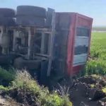 Hatay’ın Kumlu ilçesinde sürücüsünün kontrolünü kaybetmesiyle devrilen tırın sürücüsü hafif yaralandı.