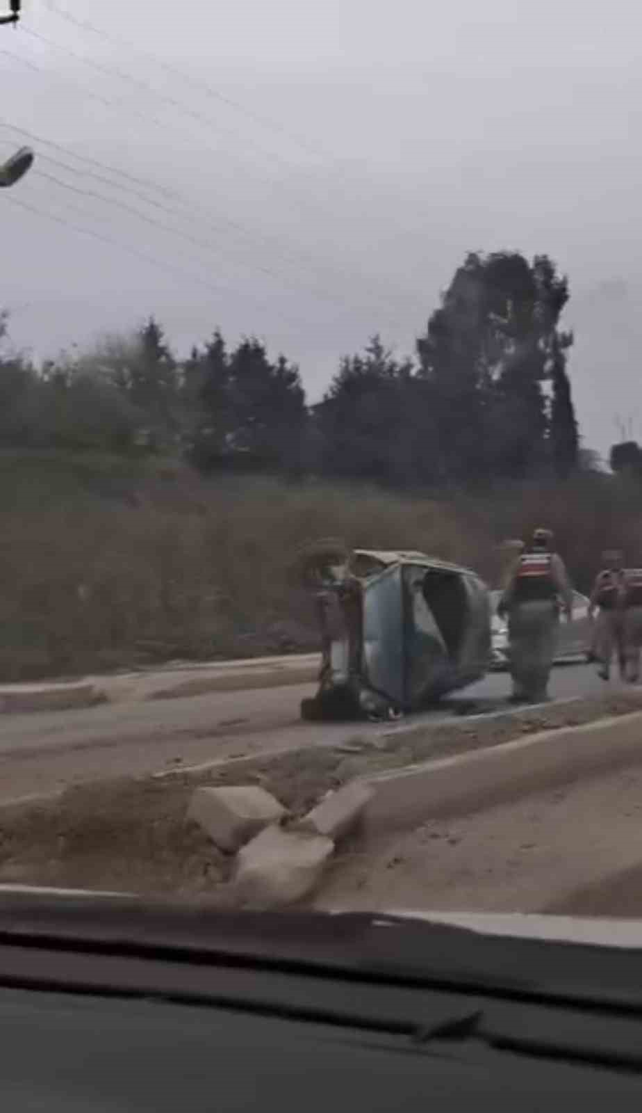 Hatay’da takla atan otomobil yan yattı: 5 yaralı
