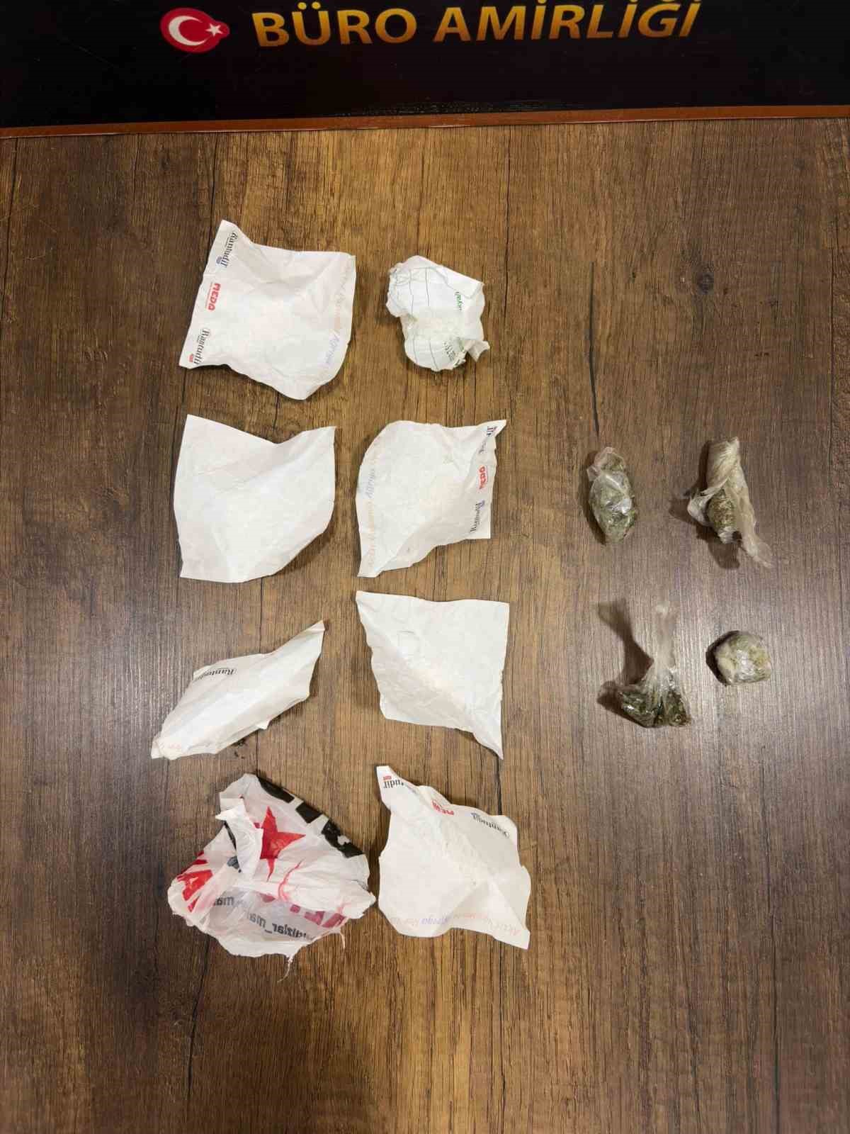 Hatay Emniyet Müdürlüğü görevlilerince, uyuşturucu madde kullanımının ve ticaretinin önlenmesine yönelik yürütülen çalışmalar kapsamında; Antakya ilçesi Alazi Mahallesi Atatürk Caddesi üzerinde takibe alınarak durdurulan motosiklette bulunan S.K. ve S.K. isimli şahısların üzerinden, satışa hazır halde 3 parça 3,78 gram esrar, 8 parça halde 9,16 gram metamfetamin adlı uyuşturucu madde ele geçirildi.