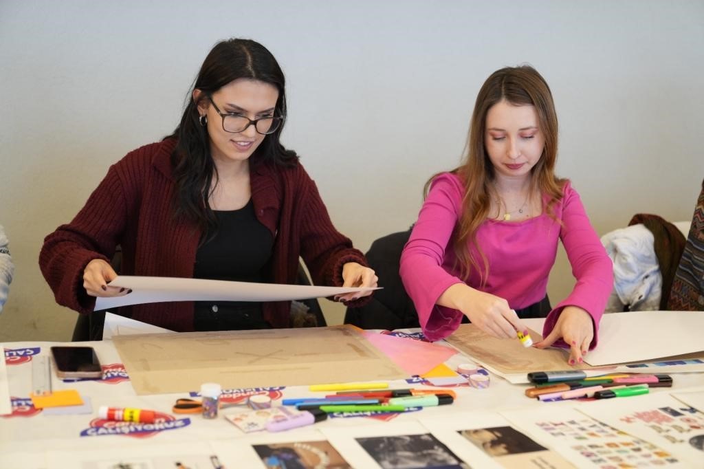 Kadın ve Aile Hizmetleri Şube Müdürlüğü Psikoloğu Rümeysa Güngör, Çocuk Gelişim Uzmanı Berre Çakırlar ve Sosyolog Selinay Demirhanöz rehberliğinde yürütülen atölyede, sanatın iyileştirici ve kapsayıcı gücünden yararlanıldı. Etkinlik boyunca kadınlar, kendi yaşamları üzerine düşünme, hedeflerini sorgulama ve gelecek beklentilerini somutlaştırma fırsatı buldu.