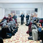 “1001 Hatim Dua Programı” için Erzurum’da bulunan DİB Başkan Yardımcısı Dr. Hazırlar, İl Müftüsü Yaşar Çapçı ve Palandöken İlçe Müftüsü Ahmet Gözcü ile beraber; Palandöken İlçe Müftülüğü’ne bağlı Yenişehir Yatılı Kız Kur’an Kursu’nda hafızlık eğitimi alan öğrencilerle buluştu. Burada hafızlarla hasbihal eden Başkan Yardımcısı Dr. Hazırlar, öğrencilere yönelik hafızlığın önemine dair bir konuşma yaptı. Başkan Yardımcısı Hazırlar, Kur’an kursu öğreticileriyle yaptığı toplantının ardından ziyaretini tamamladı.