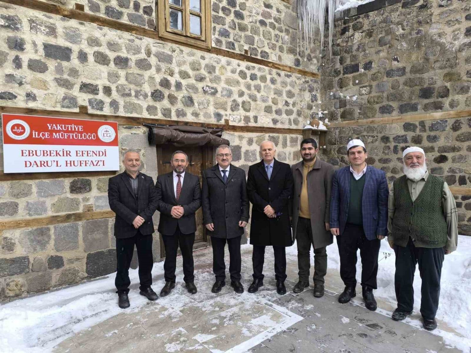 Diyanet İşleri Başkan Yardımcısı Dr. Hüseyin Hazırlar, daha sonra Ebubekir Efendi Daru’l Huffaz’ını ziyaret etti. “1001 Hatim Dua Programı” için Erzurum’da bulunan DİB Başkan Yardımcısı Dr. Hazırlar, vatandaşların hafızlıklarını ikmal ettikleri Daru’l Huffaz’da incelemelerde bulundu, hafızlarla hasbihal etti. Başkan Yardımcısı Hazırlar’a İl Müftüsü Yaşar Çapçı ve Yakutiye İlçe Müftüsü Selim Şahin eşlik etti.