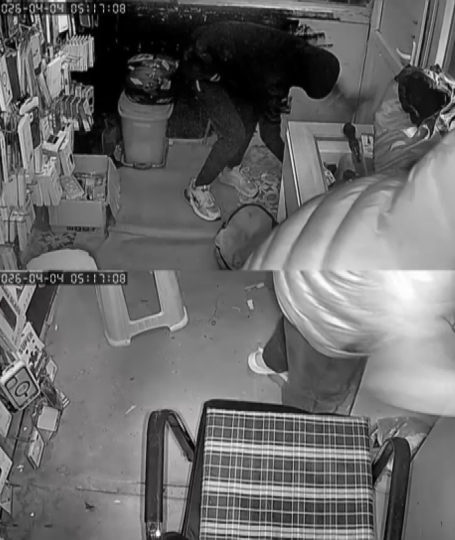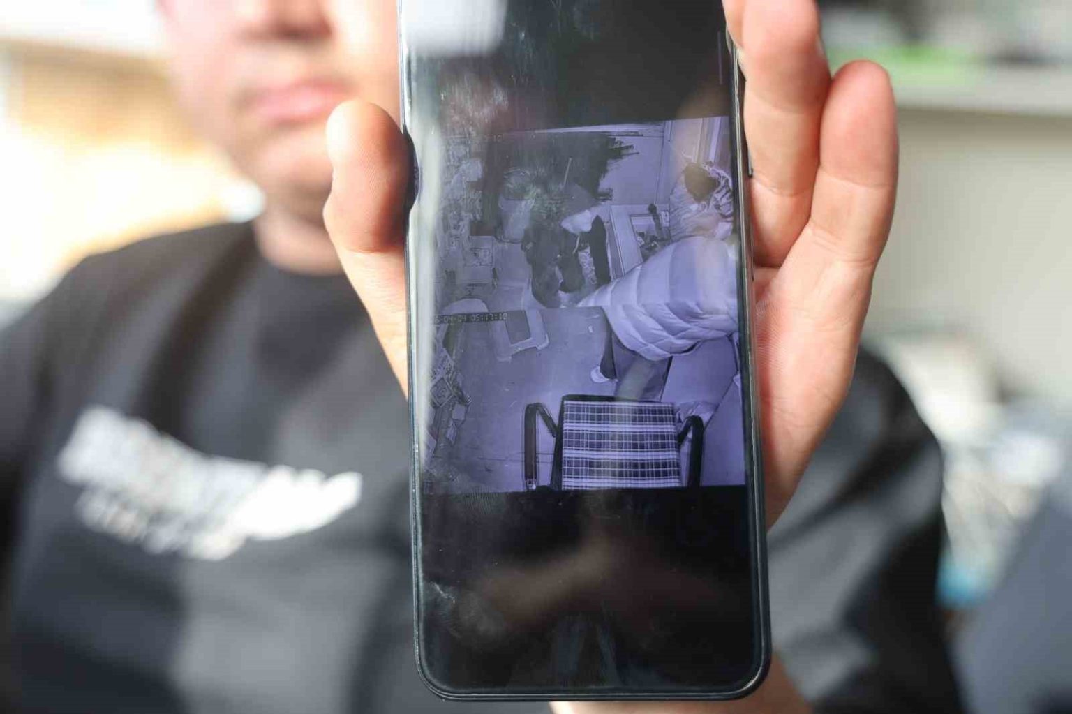 Görüntülere; kapıya tekme atarak iş yerine giren iki hırsızın cihazları çaldığı, hırsızlardan birinin diğerini sadece sıfır telefonları alması için yönlendirdiği yansıdı.