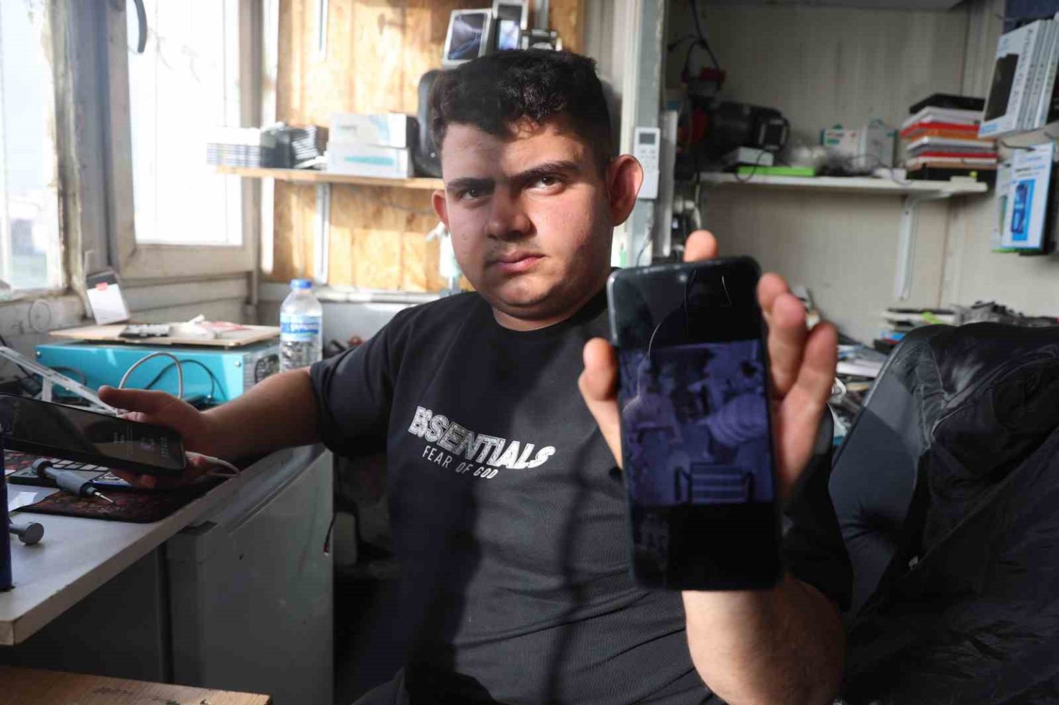 İş yerinden yaklaşık 150 bin TL değerindeki eşyaların çalındığını ifade eden Mert Uslu, “Ben telefoncu dükkanını işletiyorum. Hırsızlar bugün sabah 5 gibi dükkana girdiler. Sabah namazından çıkan insanlar dükkanımın kapısını açık olduğunu gördüler. Dükkanıma yeni mallar gelmişti ve hırsızlar bu malların hepsini çalmışlar. Toplam 100 bin TL ile 150 bin TL arasında bir zararımız oldu. Şahsi bilgisayarım ve eşyalarımızın hepsi çalındı. Hırsızlar, ufacık tablet kalemini bile almışlar. Allah onları ıslah eylesin. Geçen hafta hırsızlar; başka bir esnafa girdiler, 2 gün önce de karşıdaki esnafa girdiler, sonra da başka esnaflara girdiler. İş yerine giren iki hırsız vardı ve diğeri de dışarıda bekleyen var. Görüntüde kapıyı zorlama yok direkt tekme atıp açıyorlar. Hırsızlar, içeri girer girmez etrafı karıştırdılar. Burada bilgisayarlar, cihazlar ve kalemleri almışlar. Pahalı telefonları ve ana kartları çalmış. Kamerayı içeri geçtikten 5 dakika sonra fark ediyorlar. Kamerayı çeviriyorlar ama yüzleri belli oluyor. Yüzleri ve parmak izleriyle her şey belli oluyor. Bu hırsızlara karşı önlem alınması gerekiyor. Ben 16 yaşındayım ve 3 yıldır iş yerimi işletiyorum. Dışarıdan göründüğü gibi işlerimiz kolay değil. Ben de okuyabilirdim ama ben kendi paramı kazanmayı seçtim. Bir insanın emeği bu kadar kolay çalınmamalı” dedi.