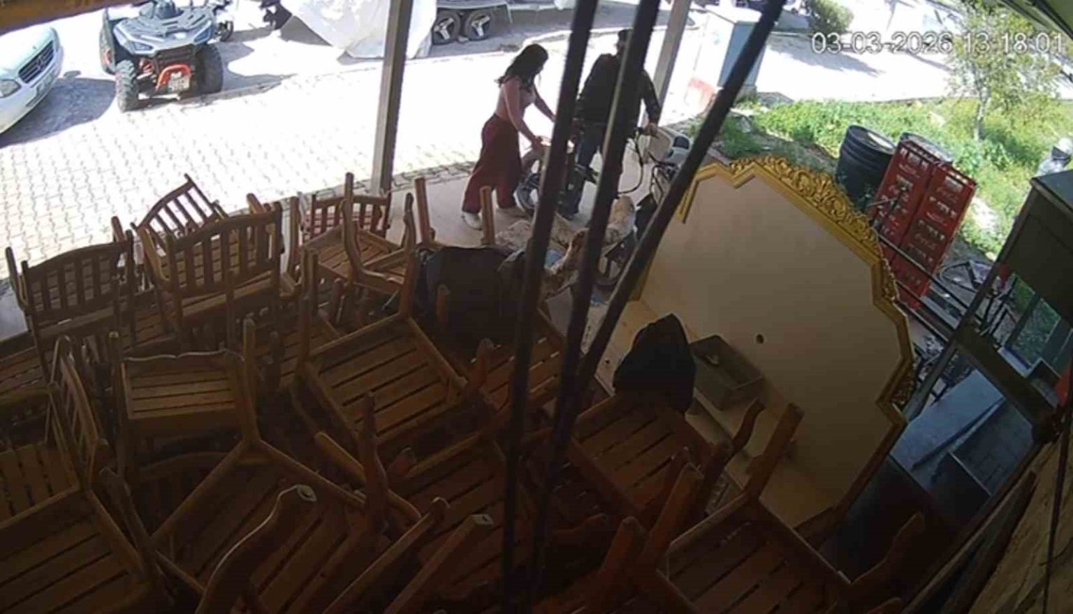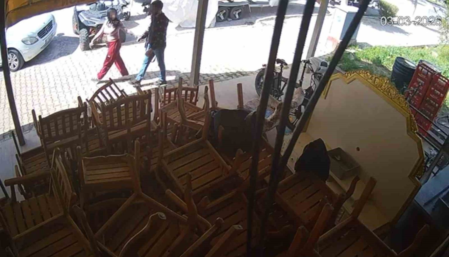 Güvenlik kameralarına yansıyan görüntülerde ise şüphelinin zincir marketten hırsızlık yaptığı anlara ait görüntüler ve Side’de bir restoranın önünde bulunan bisikleti çaldığı yansıdı. Özellikle bisiklet hırsızlığı görüntülerinde, M. B’nin “Konuşmam seninle, beni seviyorsan bırak” dedikten sonra hırsızlık eyleminden vazgeçtiği görülüyor, ardından ise M. B.’nin tekrar olay yerine gelip bisikleti çaldığı yer alıyor.