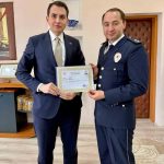 Ziyaret kapsamında Kaymakam Erkan Atam, özverili çalışmalarından dolayı İlçe Emniyet Amiri Ayhan Istık ve personele Başarı Belgesi takdim etti.