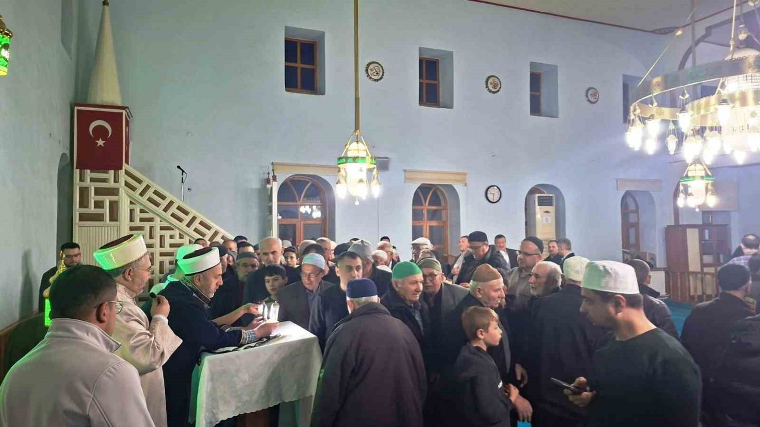 Hisarcık İlçe Müftülüğü tarafından getirtilen Sakal-ı Şerif, ilçe merkezindeki Çarşı Camii’nde teravih namazının ardından kadın ve erkeklerin ziyaretine açıldı. Camiyi dolduran vatandaşlar, dualar ve salavatlar eşliğinde Sakal-ı Şerif’i görme fırsatı buldu.
