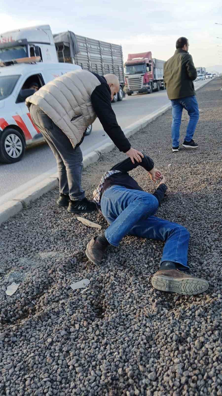Kazada hafif yaralanan araç sürücüsü, çarpmanın şokuyla araçtan çıkarak bir süre yere uzandı. Sağlık ekipleri tarafından yapılan ilk müdahalenin ardından yaralı hastaneye sevk edildi.