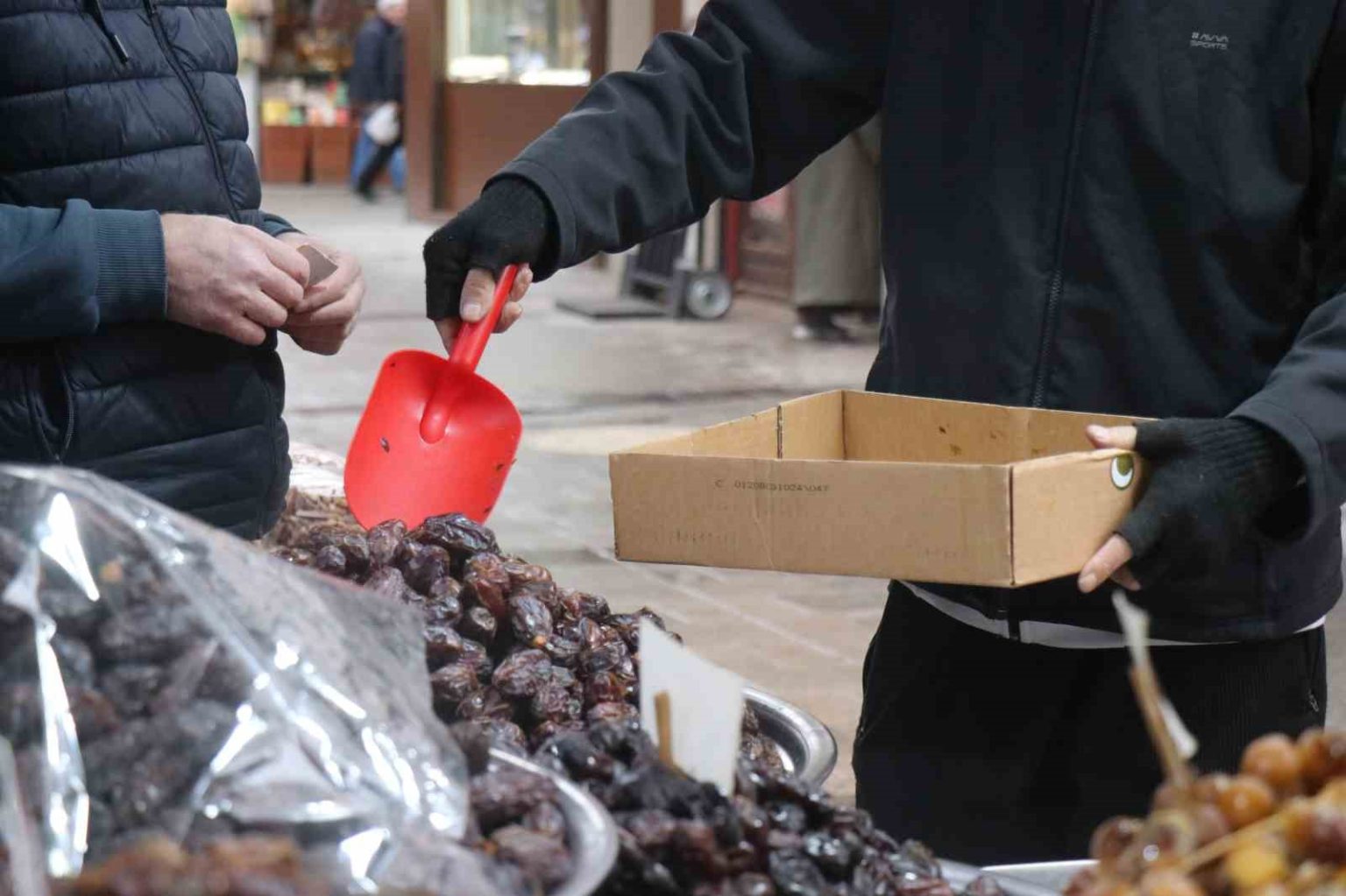 Vatandaşın en çok merak ettiği İsrail hurması ayrımı hakkında konuşan Karasakal, “Anlar desek de anlayamaz ama şöyle bir durum var; bizde İsrail hurması olmaz. Bize malı getiren insanlar Müslüman insanlar. Biz getirenleri İsrail hurması getirmemesi konusunda uyarıyoruz. Onlarda bize Filistin tarafından da Mısır tarafından da hurma getiriyor. Boykot diye bir şey bizi etkilemez, zaten biz boykot malları satmıyoruz. Ancak vatandaş bunu bakarak ayırt edemez ama güvendiği yerlerden alırlarsa bu tür durumlarla karşılaşmazlar” diye konuştu.