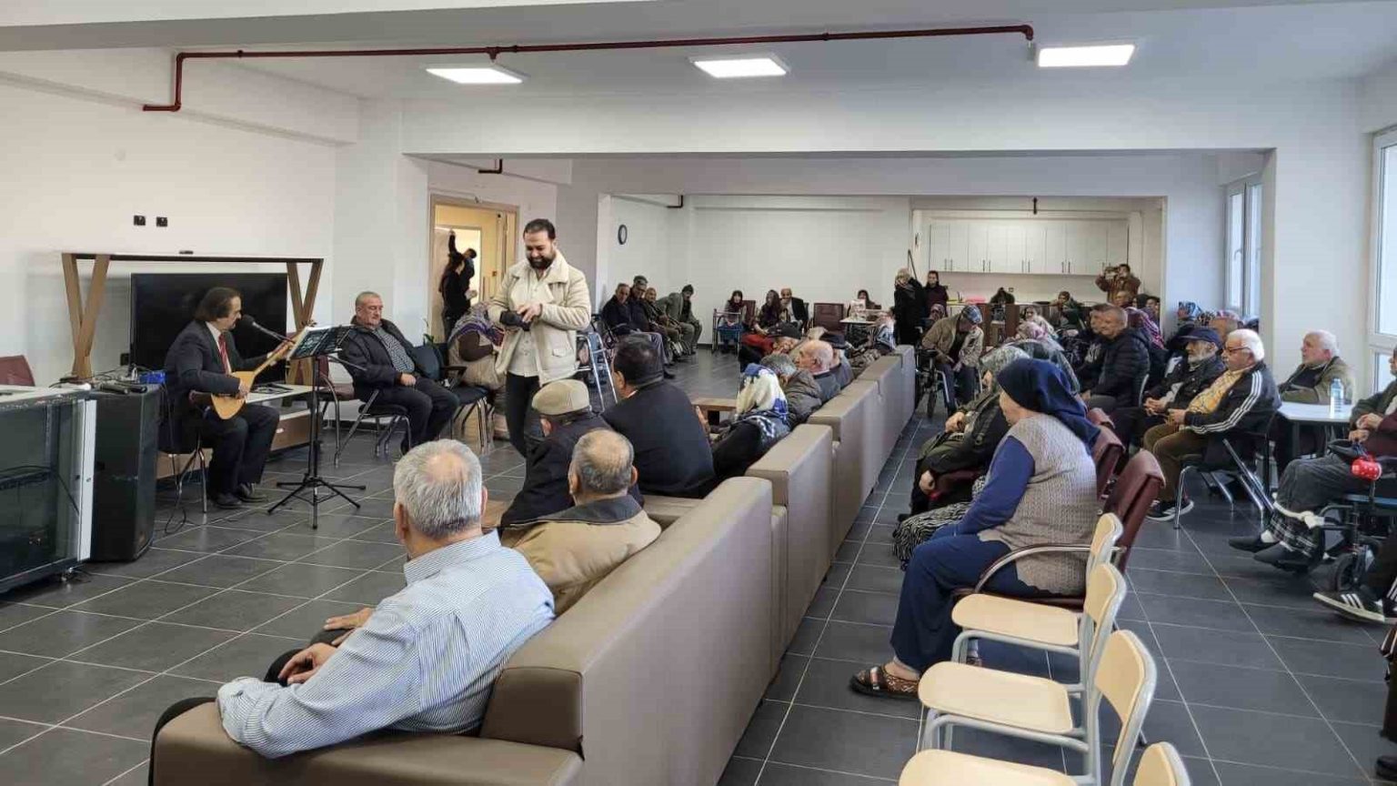 Eskişehir’de huzurevinde kalan yaşlılar, sanatçı Yaşar Aydın’ın şarkılarıyla keyifli vakit geçirdi.