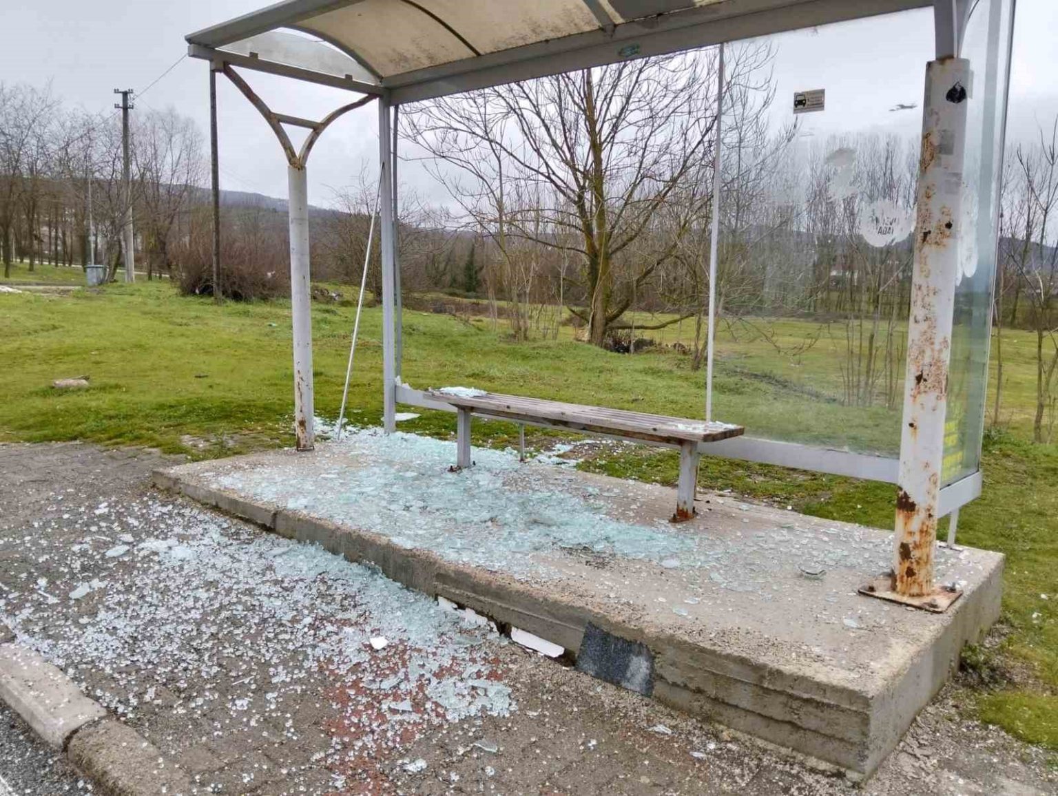 Düzce (İHA) – Düzce’nin Bahçeşehir Bölgesi’nde huzurevi sakinlerinin de kullandığı otobüs durağının camları kimliği belirsiz kişi yada kişilerce kırılarak, tuzla buz edildi.