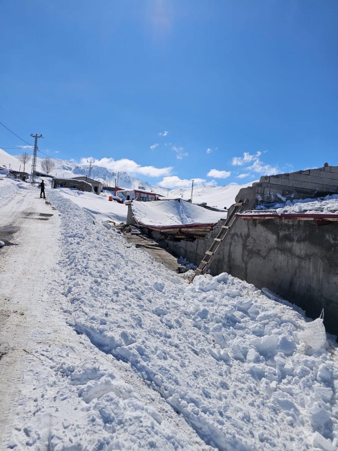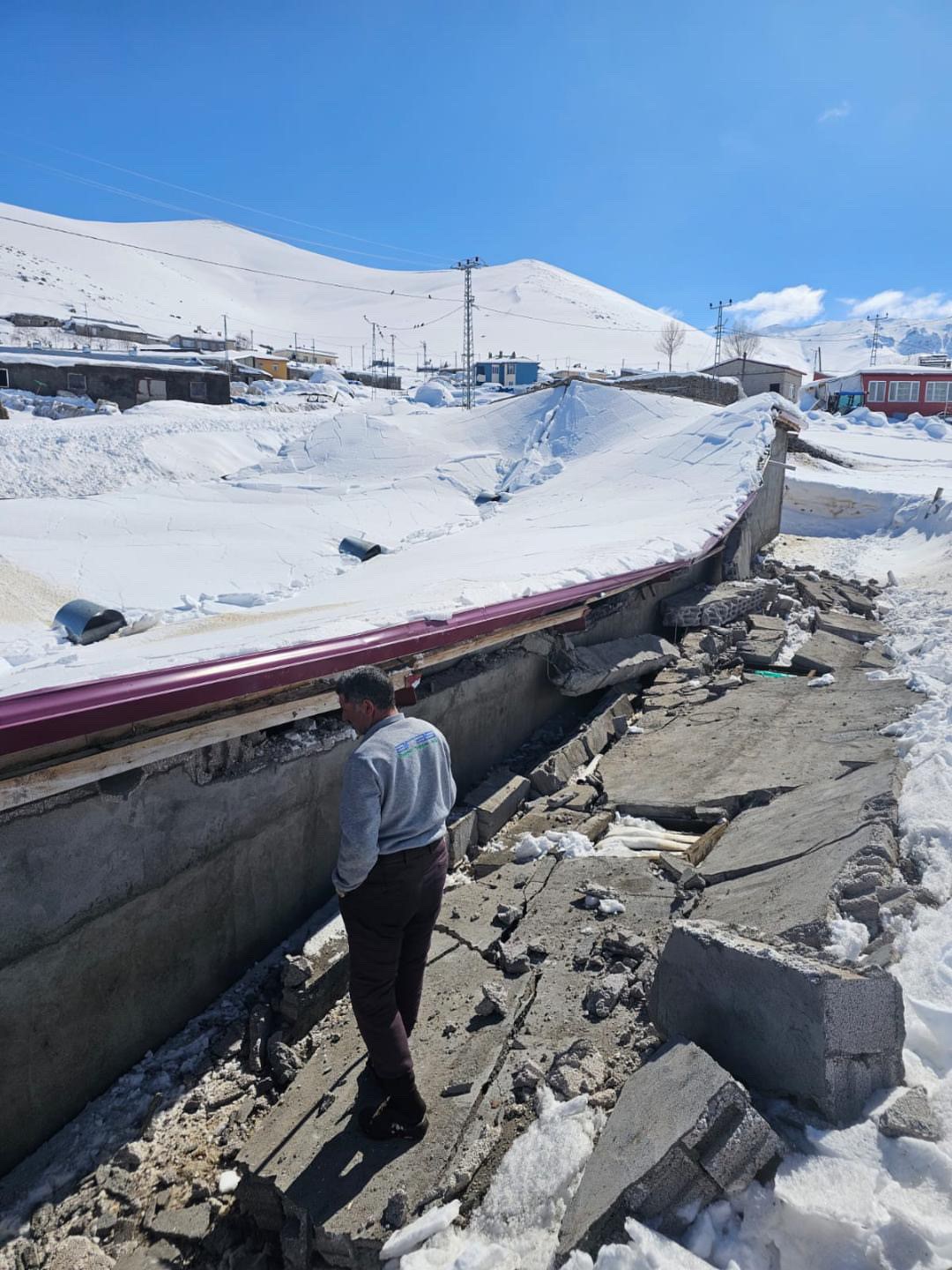 Iğdır’ın Tuzluca ilçesine bağlı Arslanlı köyünde yoğun kar yağışı nedeniyle bir ahır çöktü. Olaydan yaklaşık bir saat önce hayvanların dışarı çıkarılması muhtemel bir faciayı önledi.