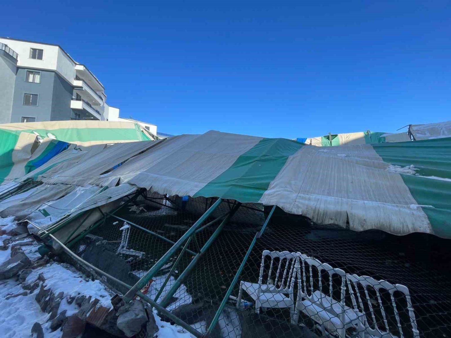 Iğdır’ın Tuzluca ilçesinde düğün salonu olarak kullanılan halı saha, günlerdir etkili olan kar yağışının ardından çöktü. Olay sırasında içeride kimsenin bulunmaması muhtemel bir faciayı önledi.