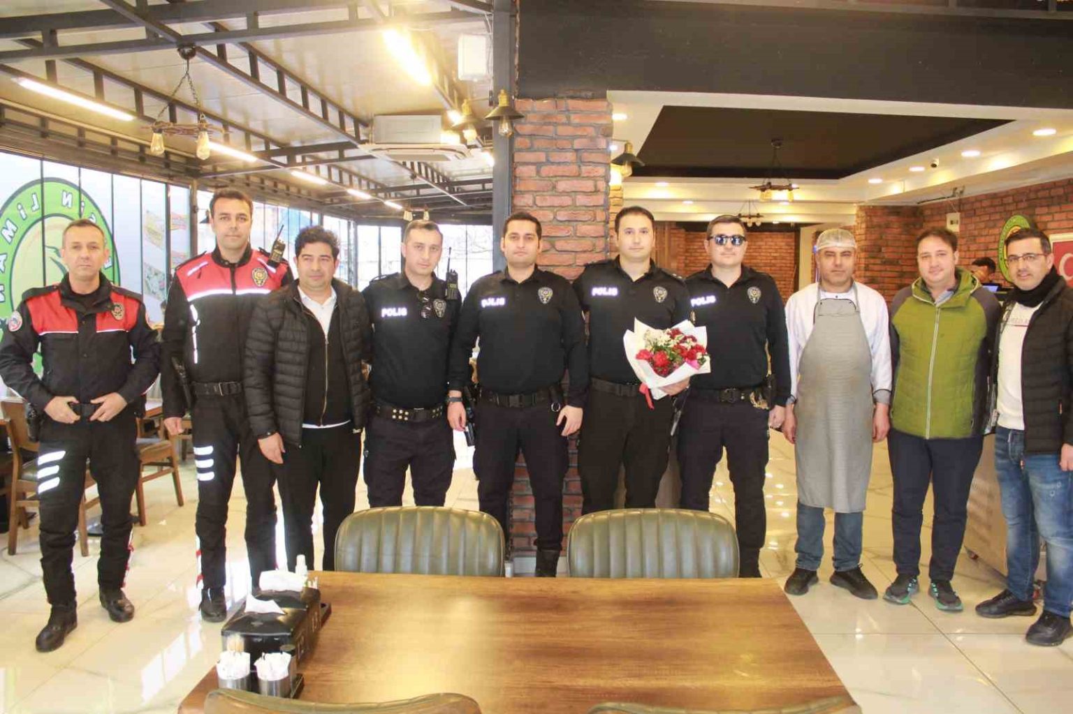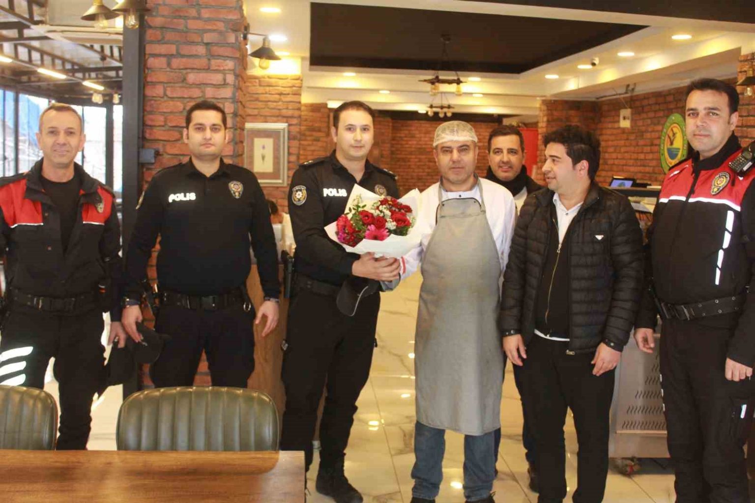 Polis ekipleri ise yapılan sürpriz dolayısıyla iş yeri sahibine teşekkür etti.