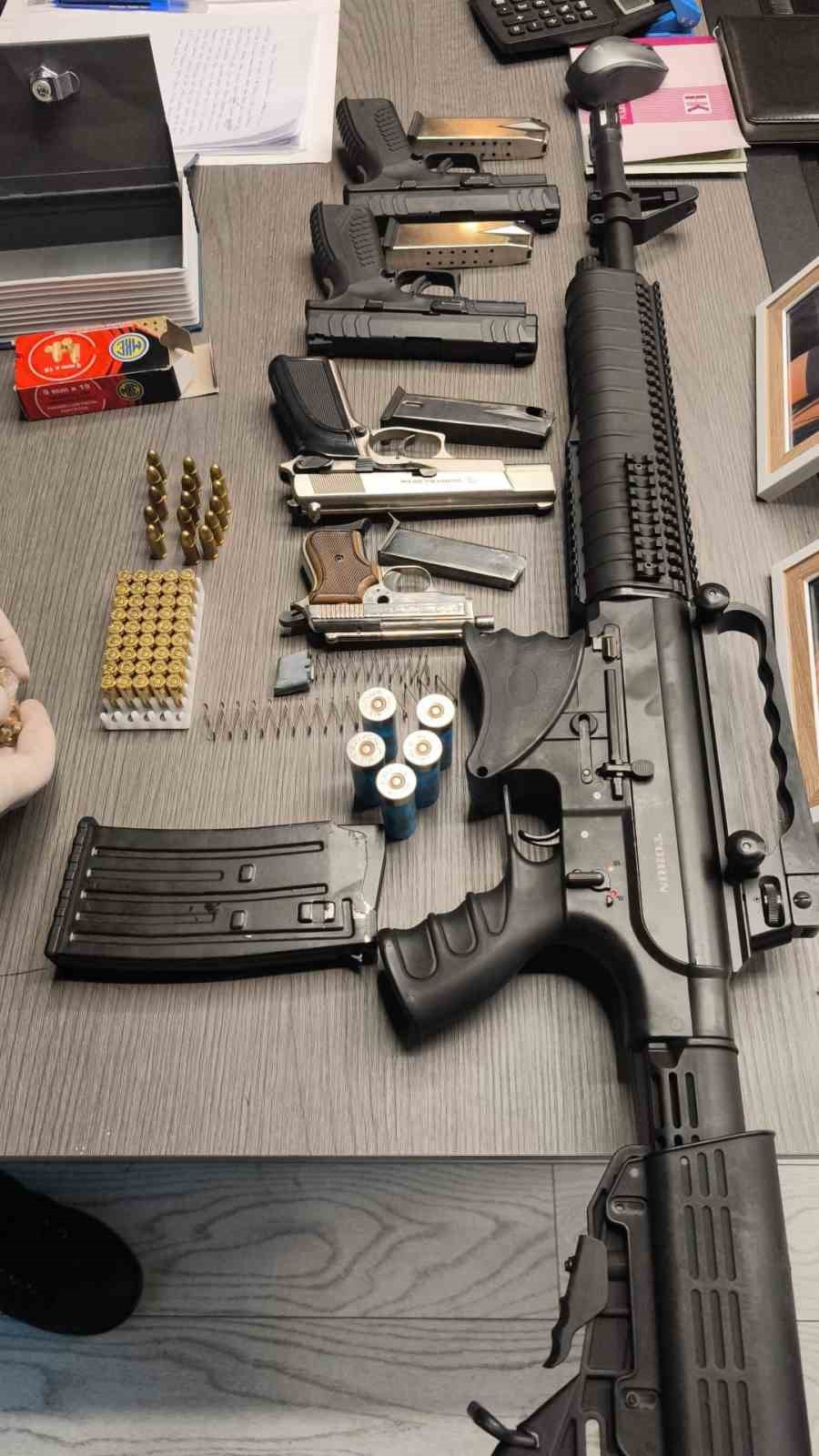 Sakarya İl Emniyet Müdürlüğü Kaçakçılık ve Organize Suçlarla Mücadele (KOM) Şube Müdürlüğü ekipleri, silah ve mühimmat kaçakçılığına yönelik yürüttüğü çalışmalar kapsamında bir şebekeyi takibe aldı. Şüphelilerin, ikametlerini iş yerine dönüştürerek silah tamiri, bakımı ve kurusıkı tabancaların gerçek silaha dönüştürülmesi işlemlerini gerçekleştirdiğini tespit eden ekipler, Erenler ilçesinde belirlenen adreslere eş zamanlı operasyon düzenledi. Operasyonda F.D.Ö. (33), M.Ö. (40) ve H.S. (40) isimli şahıslar yakalanarak gözaltına alındı. Şüphelilere ait bir iş yeri ve iki ikamette yapılan detaylı aramalarda 1 adet şemsiye gibi aparatların içerisine konulan kalem şeklindeki vahim nitelikli suikast silahı, 6 adet ruhsatsız tabanca, 3 adet ruhsatsız tüfek, 141 adet 7.65 fişek,75 adet 9.19 fişek, 52 adet 6.35 fişek, Polis Uygulamalarında yakalanmamak için kitap görünümlü hazırlanan özel zula, 8 adet şarjör, 9 adet silah yapımında kullanılan parça, 62 adet kartuş, Kurusıkı tabancaları gerçek silaha dönüştürmek için kullanılan 1 adet matkap, 5 adet emniyet tertibatı parçası olan aparat, 7 adet icra mili, 14 adet tabanca yayı, 2 adet şarjör, 4 adet kabza, 12 adet matkap ucu, 1 adet sürgü, 1 adet pafta kolu, 5 adet şarjör aparatı, 5 adet fişek ele geçirildi.