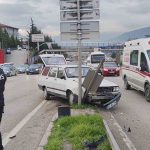 Karabük’te iki otomobilin çarpıştığı kazada 1 kişi yaralandı. Kaza anı iş yerinin güvenlik kamerasına yansıdı.
