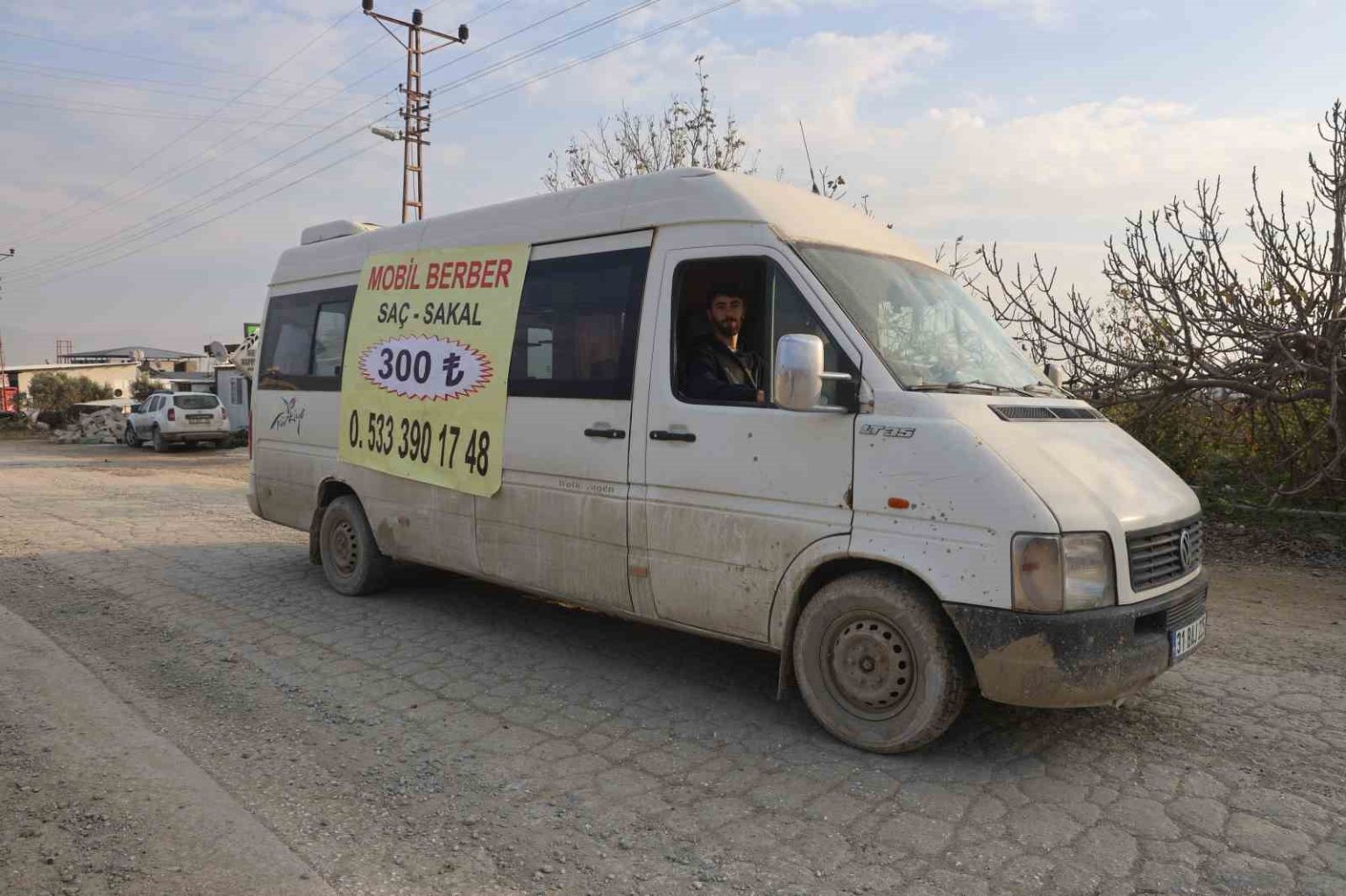 Defne ilçesi Toygarlı Mahallesi’nde yaşayan Salih Özçelik, berber mesleğini 15 yıldır yaparak geçimini sağlamaya çalışıyor. Berber mesleğini çok seven Özçelik, arkadaşı İbrahim Culhacı ile birlikte bir minibüs alarak içini bir berber dükkanı gibi düzenlenmeye başladı. Minibüsün içerisinin elektrik düzeneğini kurduran ortaklar, iki koltuk ve berber malzemelerini alıp yerleştirerek ‘mobil berber aracı’ yaptılar. Dışarıdan normal bir minibüs olarak görünen mobil berber, içine girildiğinde berber dükkanın da farksız bir görünüme sahip. Ulaşım imkanı olmayan yerlere giden Özçelik, mobil berber aracıyla genelde ulaşımın zor olduğu şantiye alanlarındaki insanları tıraş ediyorlar. Mobil berber aracıyla bir aydır bu şekilde çalışan Özçelik, müşterilerin talepleri doğrultusunda belli günlerde şantiyelere giderek insanlara tıraş hizmeti veriyor. Hafta sonları iş yerinde çalışan Özçelik, hafta içi günlerinde mobil berber aracıyla gezerek insanları tıraş ediyor. İlk görenler mobil berber aracını garipse se de Özçelik, mobil berbere olan ilgiden memnun.