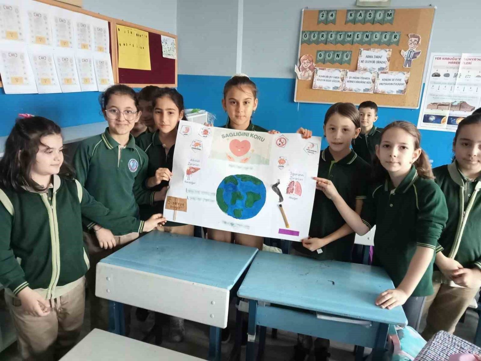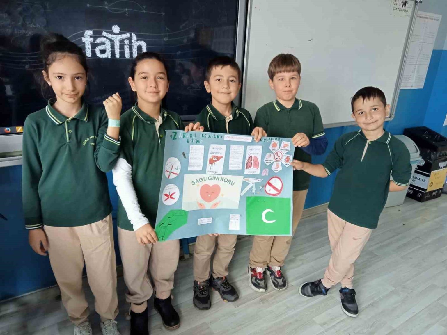 Düzce Karaçalı Süperlik İlkokulu öğrencileri hazırladıkları afiş ile sigara ve alkolün zararlarını anlattı.