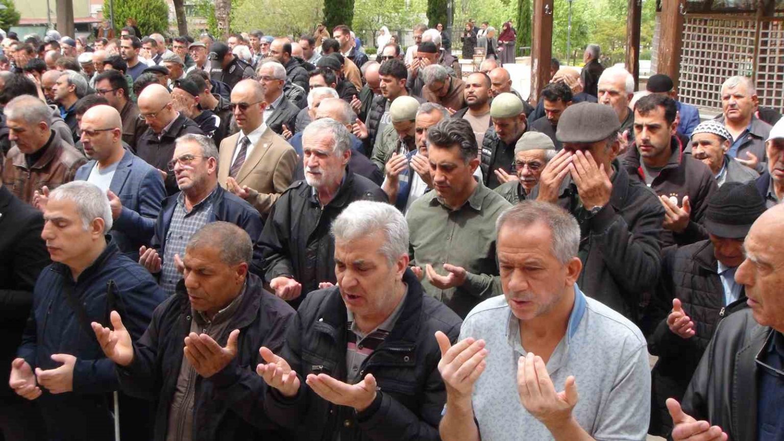 Manisa’da Kahramanmaraş’taki okul saldırısında hayatını kaybedenler için düzenlenen gıyabi cenaze namazına yoğun katılım sağlanırken, namaz öncesi konuşan Hatuniye İmam Hatibi Hayrettin Çoban’ın titreyen sesi cemaate duygu dolu anlar yaşattı.