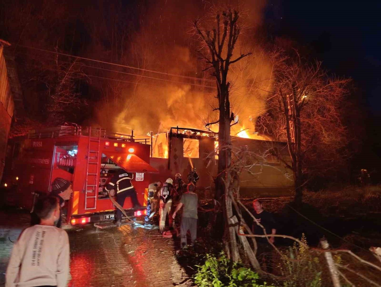İnegöl’de tek katlı ev alev alev yandı