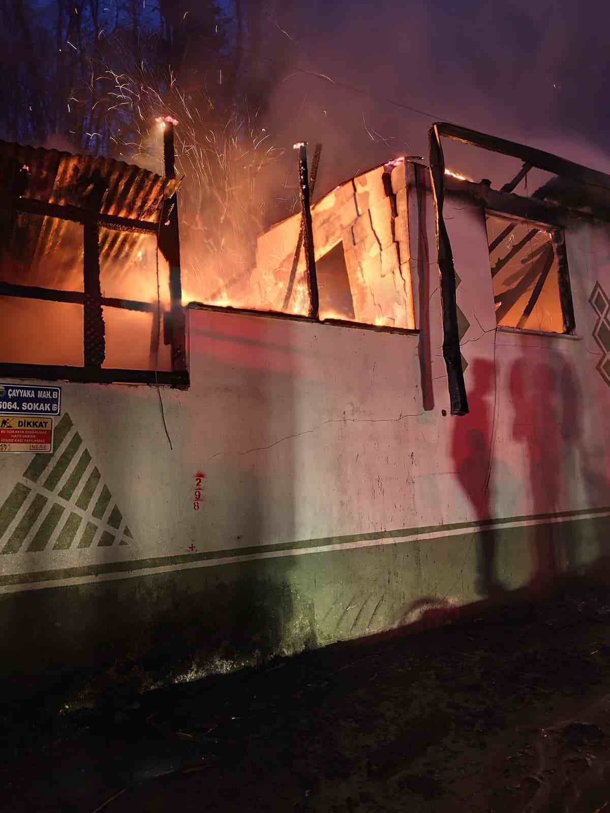 Yangın, saat 05.30 sıralarında kırsal Çayyaka Mahallesi’nde Bülent Akman’a (63) ait evde meydana geldi. Henüz belirlenemeyen nedenle çıkan yangını fark eden ev sahibinin ihbarı üzerine olay yerine çok sayıda itfaiye ve jandarma ekibi sevk edildi. Alev alev yanan ve çalılık alana sıçrayan yangın ekiplerin 1 saatlik müdahalesiyle ormana sıçramadan söndürüldü. Evin kullanılamaz hale geldiği yangının çıkış nedeni araştırılıyor.