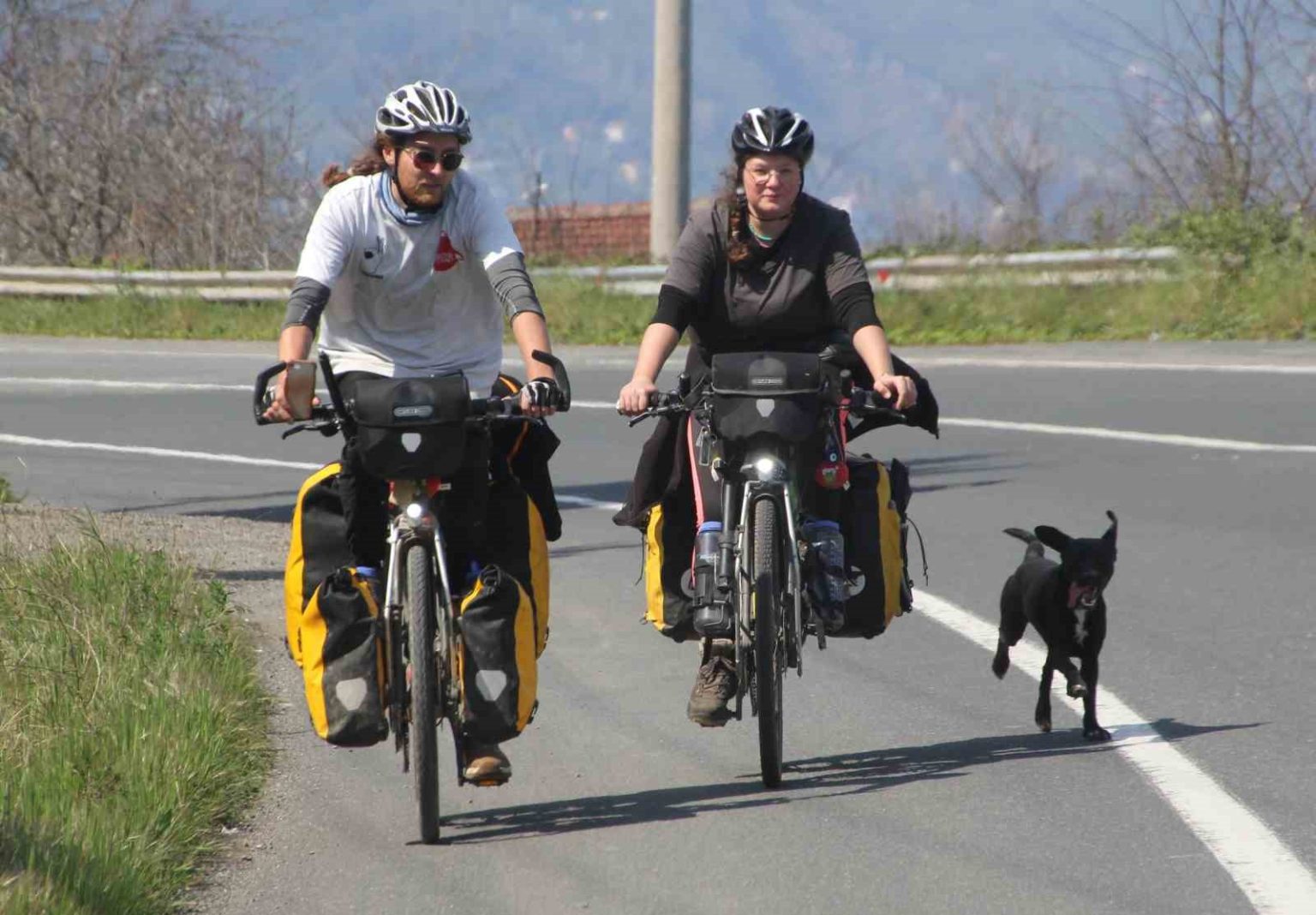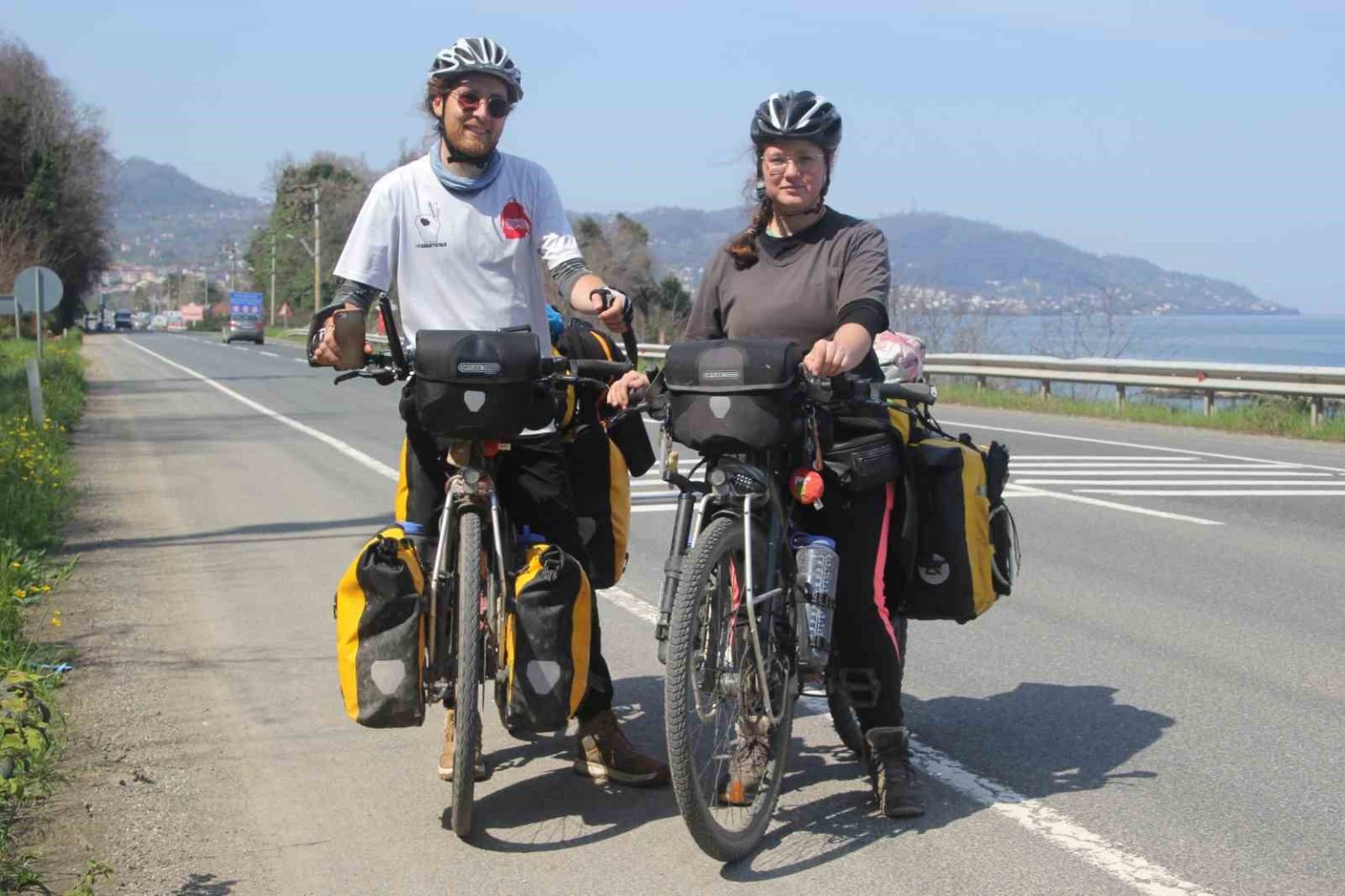 Normal hayatlarında insan kaynakları alanında çalışan Alexia Lamoureux (31) ile kamyon şoförü Owain Paul (31), mesleklerini ve düzenli yaşamlarını geride bırakarak bisikletleriyle dünya turuna çıkma kararı aldı. İngiltere’nin Galler bölgesinden başlayan yolculukta çift, Avrupa’yı geçerek Türkiye’ye giriş yaptı ve Ordu’ya ulaştı.