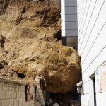 Denizli’de inşaat kazısı sırasında kopan kaya parçası ve meydana gelen toprak kayması, hem binaya hem de binanın istinat duvarına zarar verdi. Kayan toprak sebebiyle bir başka binanın da temeli açığa çıktı.