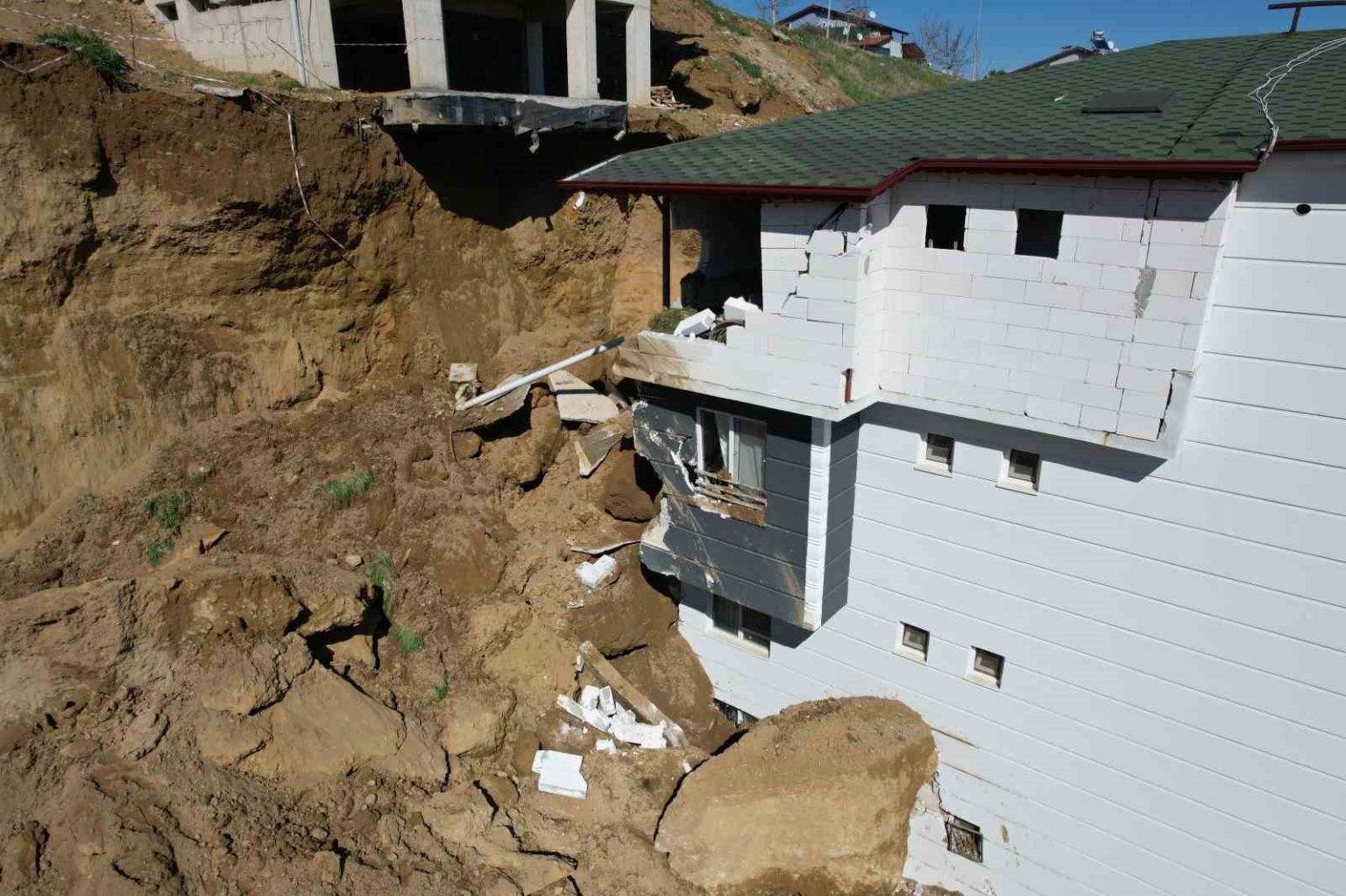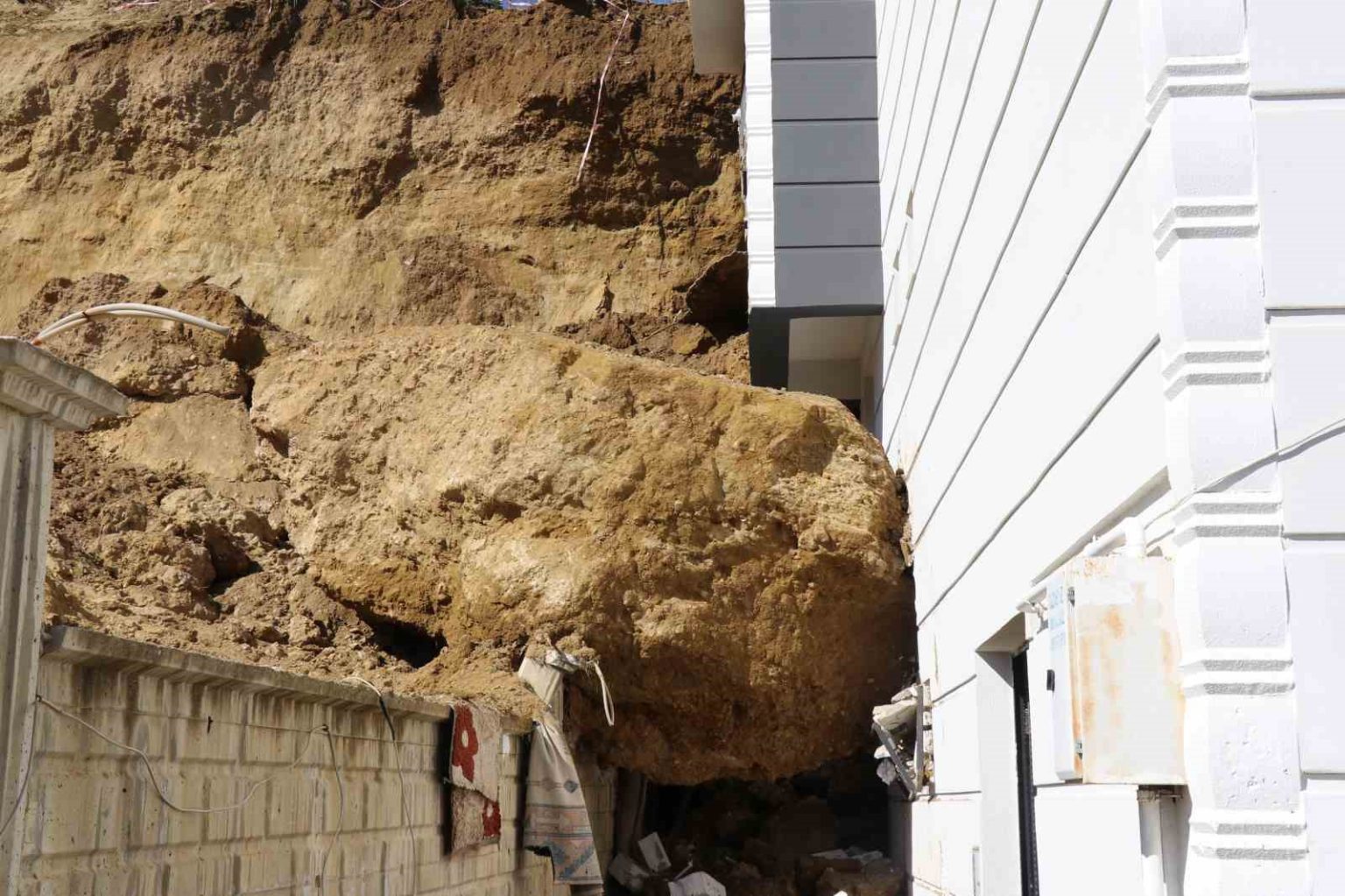 Denizli’de inşaat kazısı sırasında kopan kaya parçası ve meydana gelen toprak kayması, hem binaya hem de binanın istinat duvarına zarar verdi. Kayan toprak sebebiyle bir başka binanın da temeli açığa çıktı.