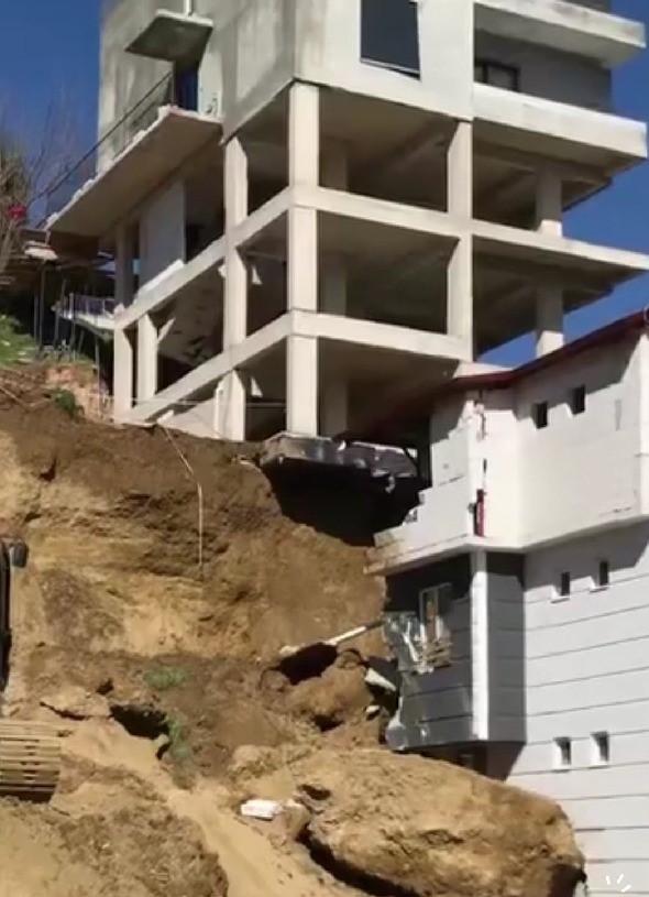 Edinilen bilgilere göre, 4 katlı olarak yapımı süren inşaat ile kaya düşen bina arasında yaklaşık 10 metre kot farkı bulunduğu, iki yapı arasında herhangi bir istinat duvarının olmadığı belirtildi. Kot farkı nedeniyle üst seviyede bulunan inşaat alanından kopan kaya parçası, aşağı kotta yer alan binanın çatısına ve üst bölümlerine isabet etti. Olay sırasında çevrede kısa süreli panik yaşanırken, ihbar üzerine bölgeye gelen polis, zabıta ve itfaiye ekipleri güvenlik önlemi alarak alanı şeritlerle kapattı. Olası risklere karşı binanın çevresi kontrollü şekilde boşaltıldı.