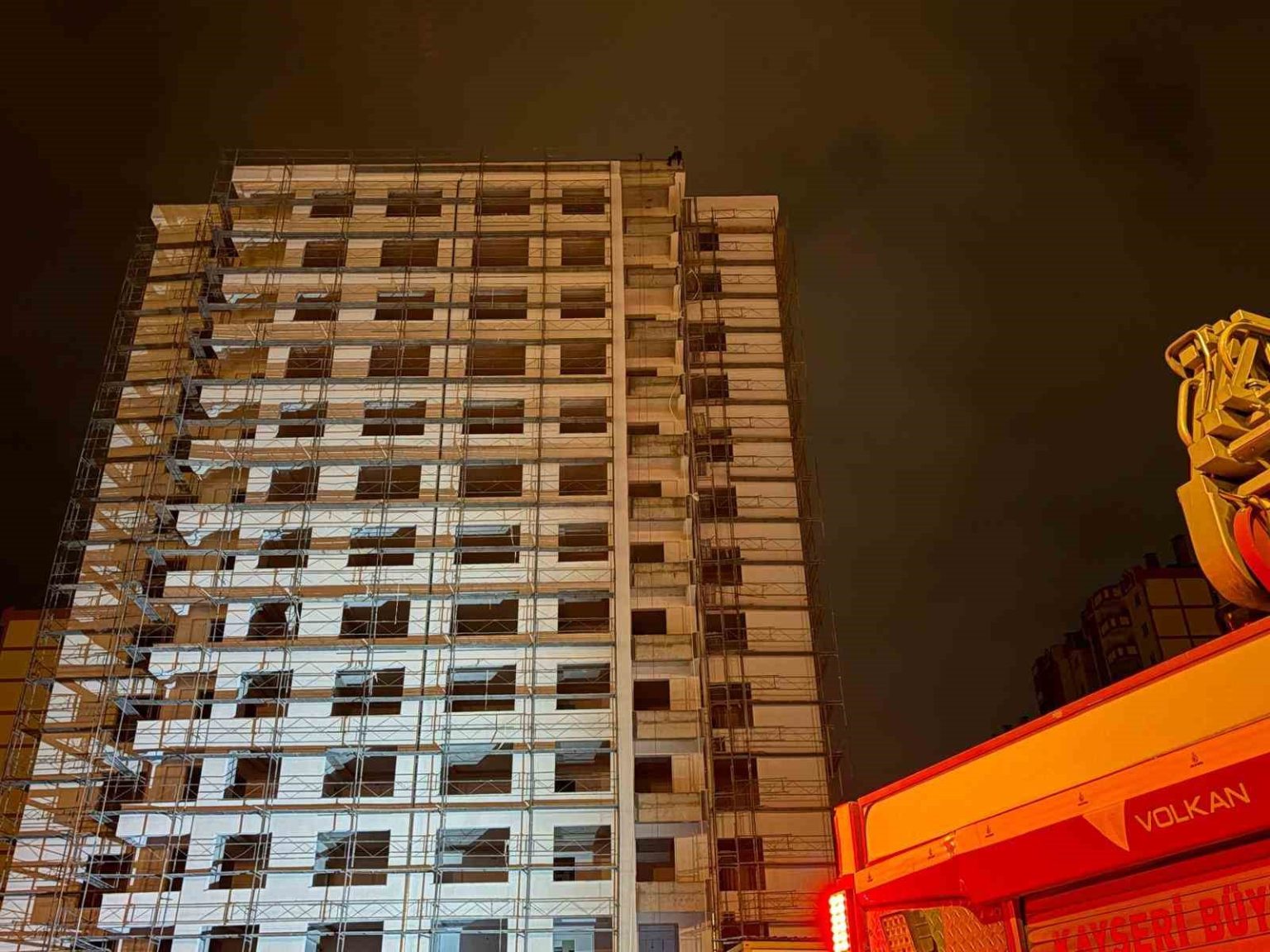 Kayseri’nin Melikgazi ilçesinde 14 katlı inşaatın çatısına çıkarak intihara kalkışan şahıs, polis ekiplerinin 3 saatlik ikna çalışmaları sonucu ikna edildi.