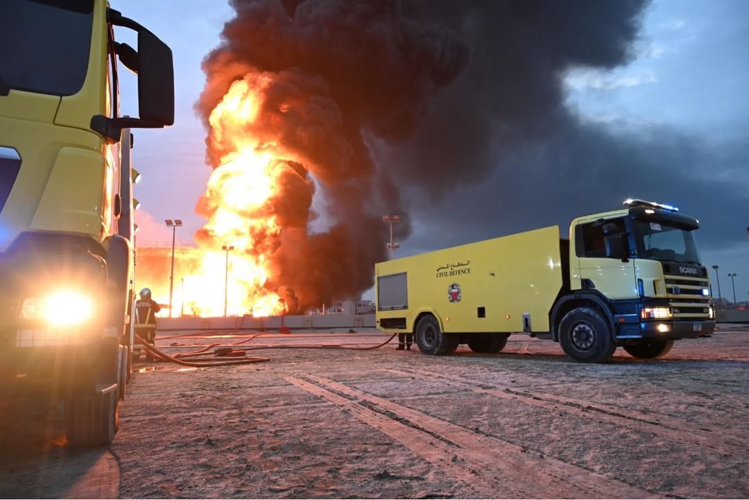 İran ordusunun Bahreyn’deki bir tesiste bulunan yakıt tanklarını hedef alması sonucu yangın çıktı.
