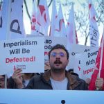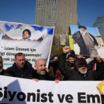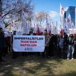ABD’nin Ankara Büyükelçiliği önünde, İran bayrakları, Hamaney’in fotoğrafları ve “İslam’ın ve Müslümanların asıl düşmanı emperyalizm ve siyonizmdir”, “Amerika’nın özgürlük ve demokrasisi katliamdır” yazılı dövizler taşıyan kalabalık, “Kahrolsun ABD” ve “Kahrolsun İsrail” sloganları attı.