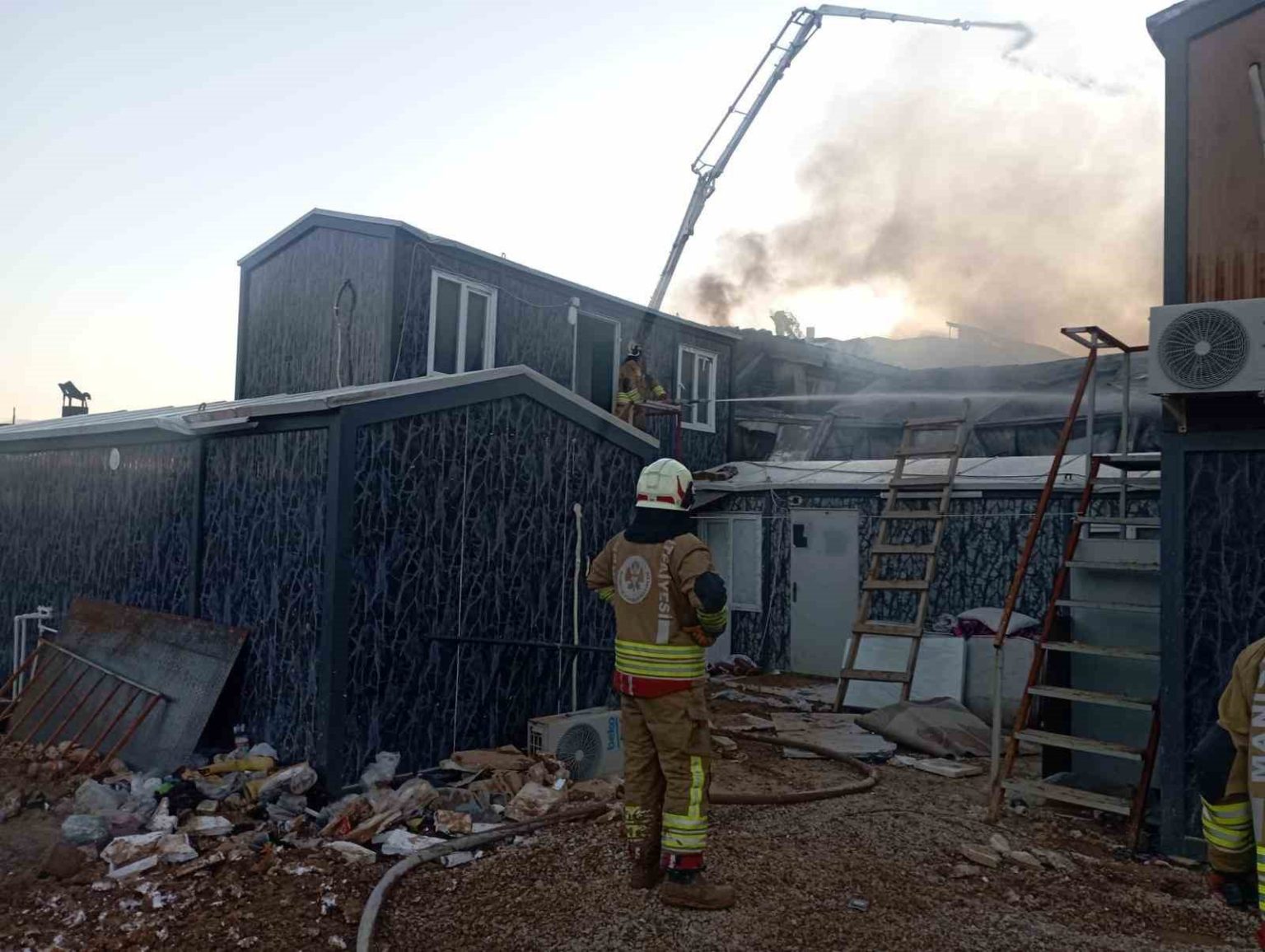 İşçi konteynerinde çıkan yangın kontrol altına alındı