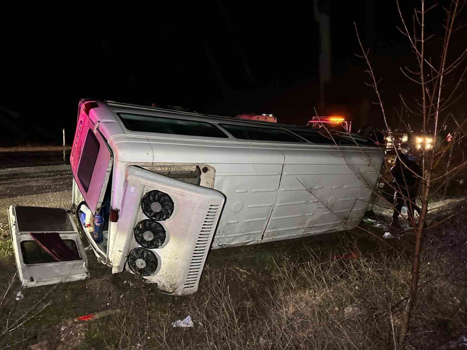 Uşak’ta işçi servisinin şarampole devrilmesi sonucu meydana gelen kazada 17 kişi yaralandı.