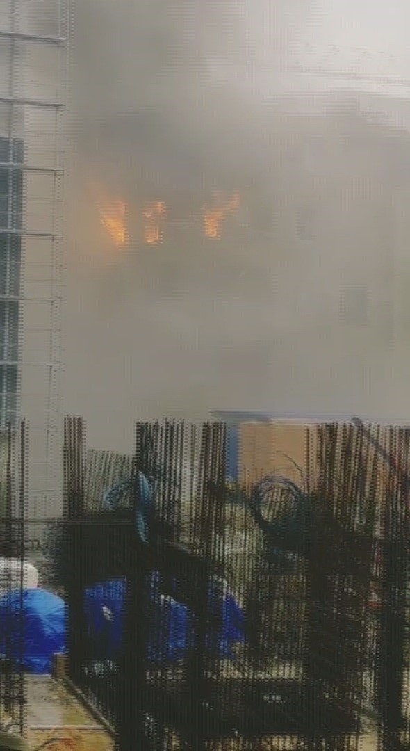 İşçilerin kaldığı apartman dairesi alevlere teslim oldu