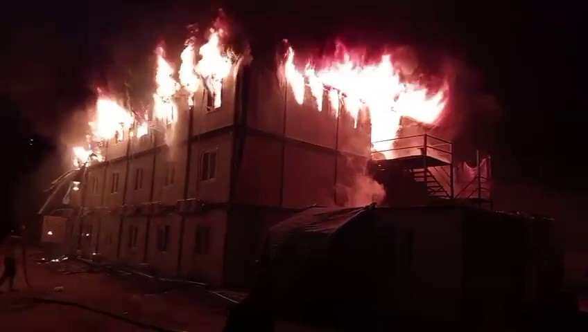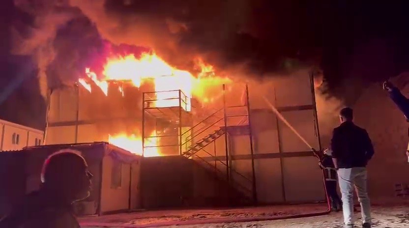 İşçilerin kaldığı konteyner alevlere teslim oldu