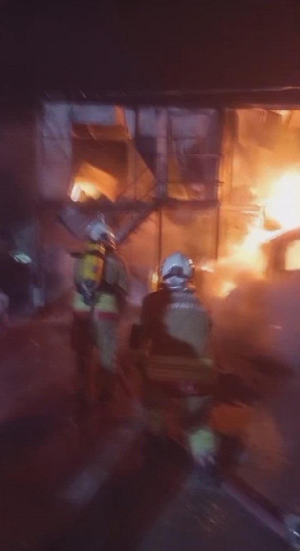 İşçilerin kaldığı konteyner yatakhane alevlere teslim oldu